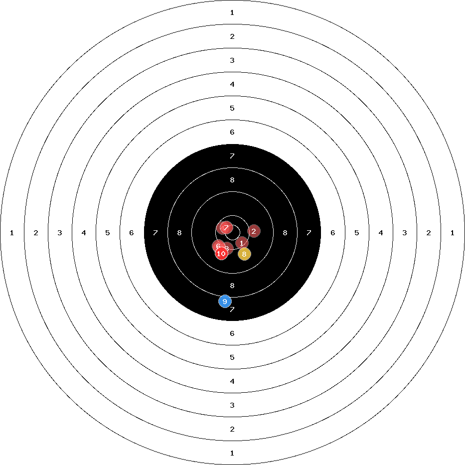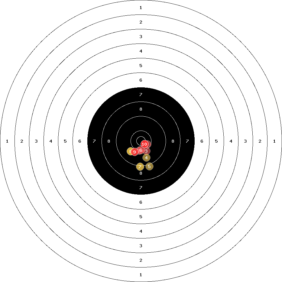 hit position: 2.53 mm right, 5.1 mm low