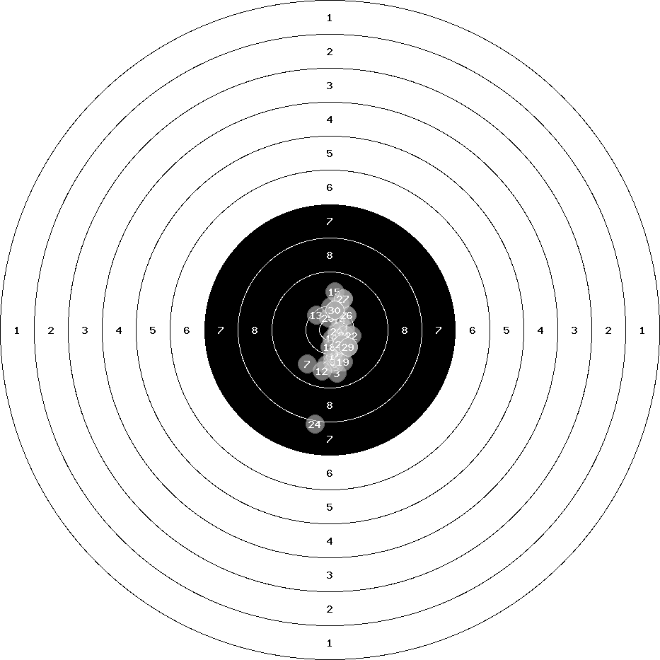 hit position: 1.27 mm right, 2.48 mm low