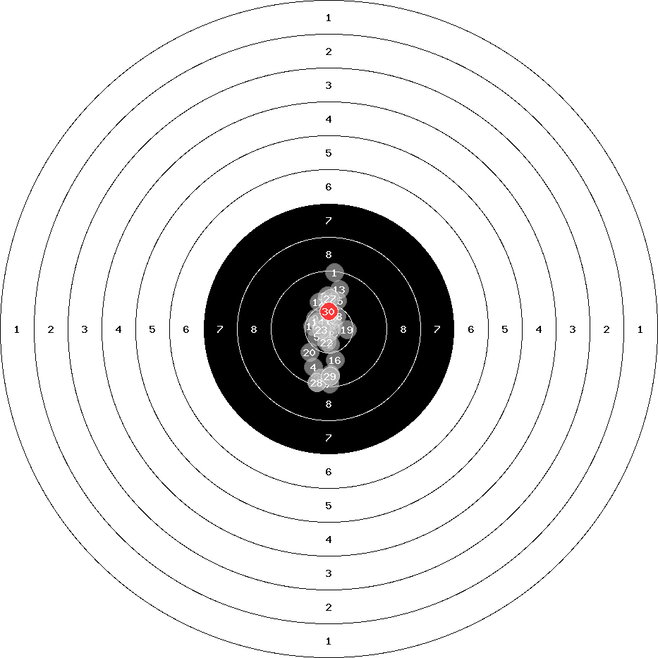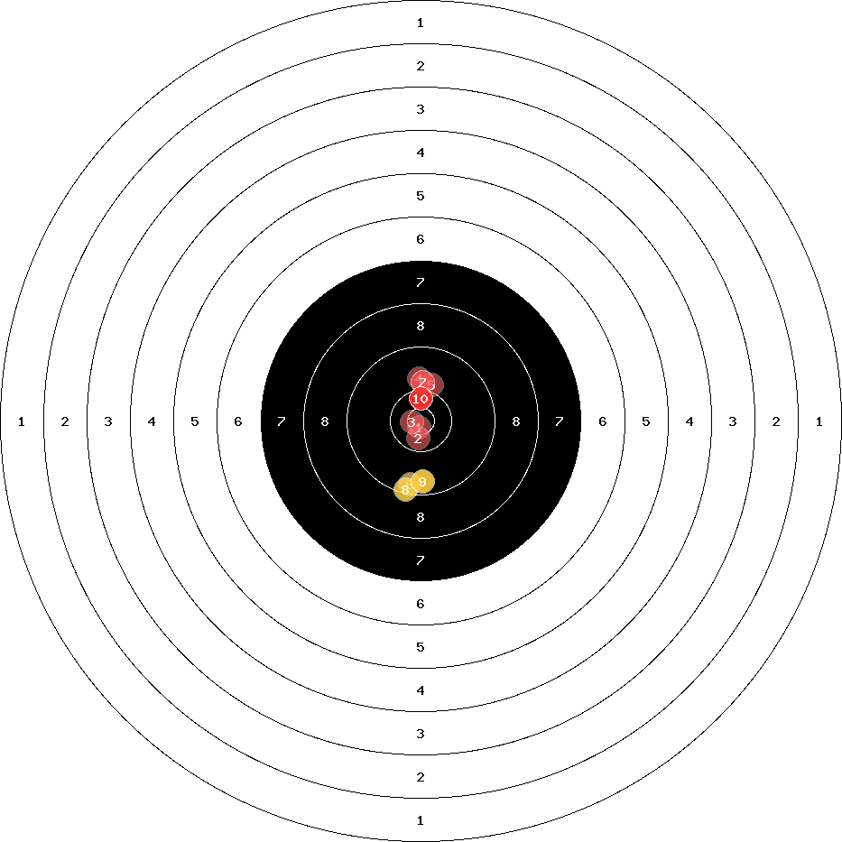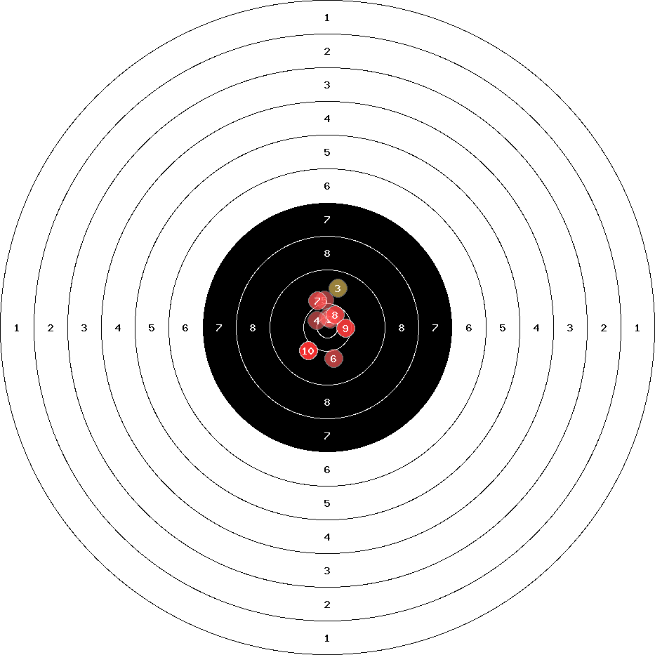hit position: 0.45 mm left, 0.58 mm low