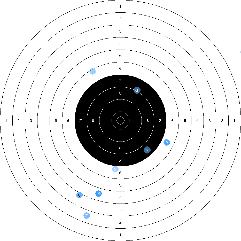 hit position: 4.8 mm right, 8.09 mm low