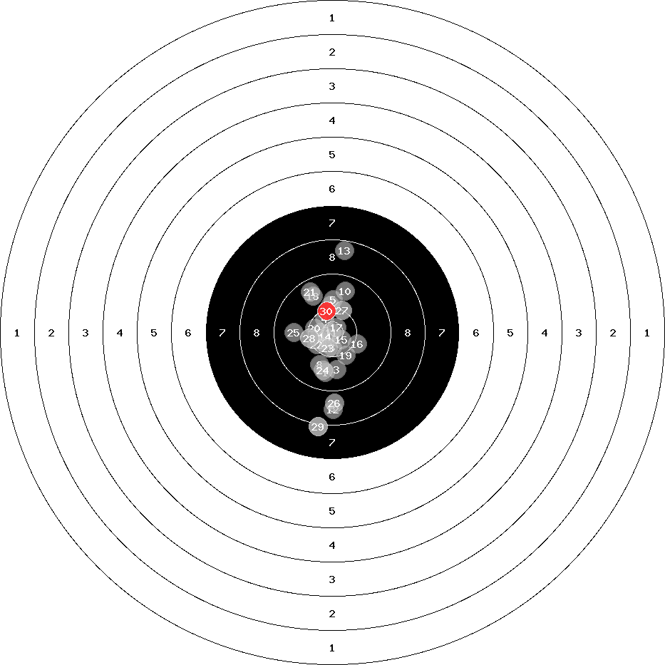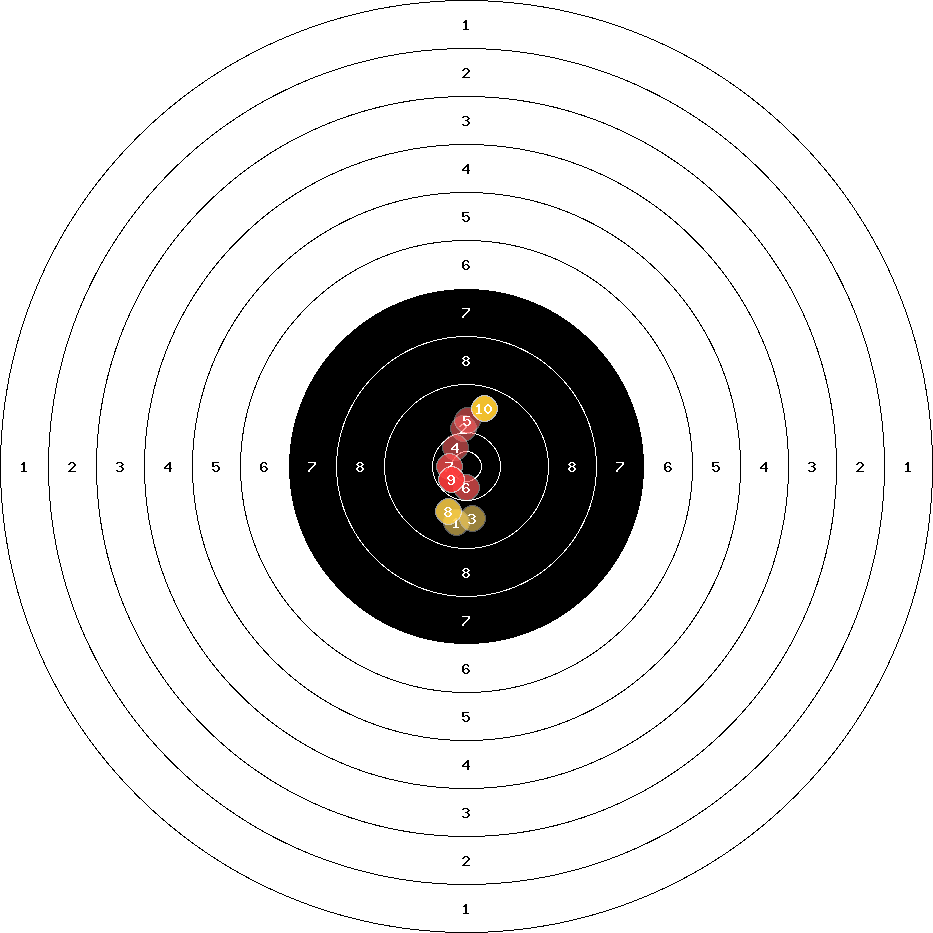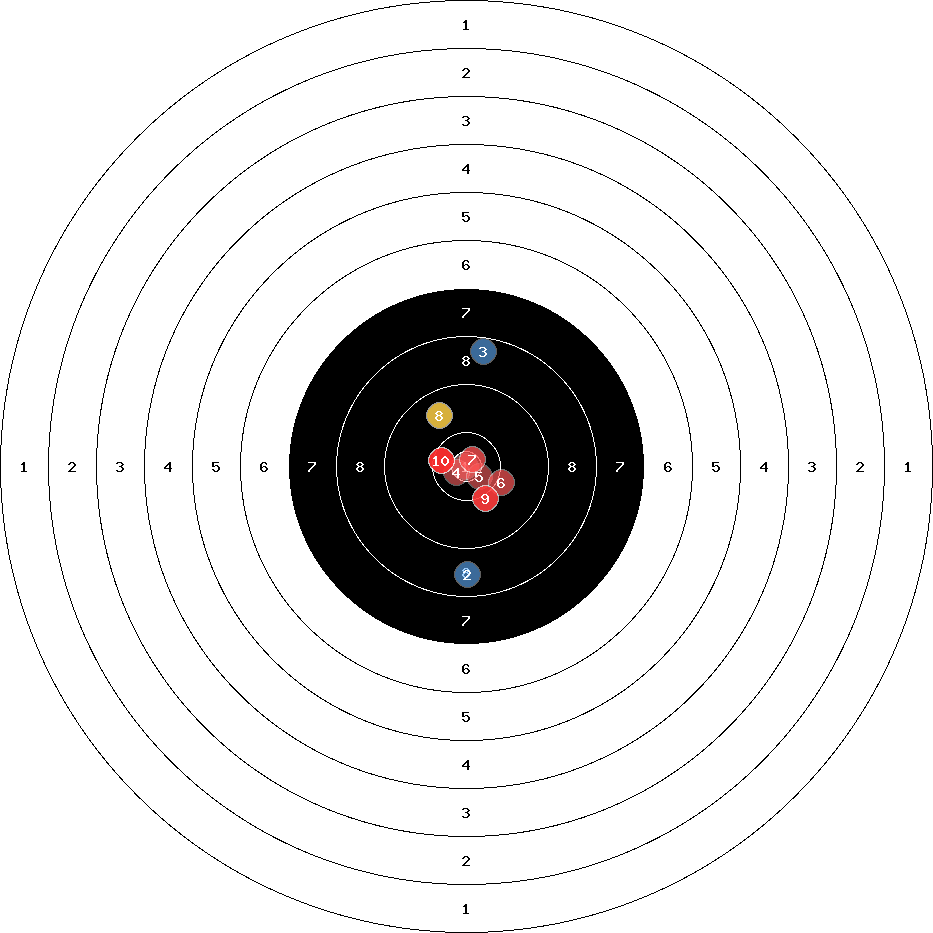 hit position: 0.82 mm left, 0.44 mm low