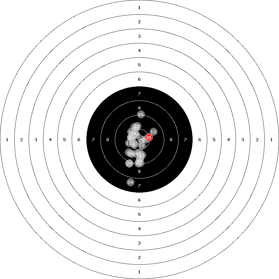 hit position: 0.87 mm left, 1.31 mm low