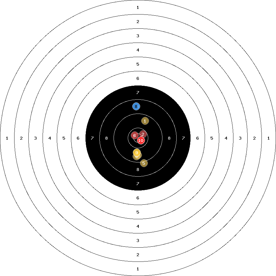 hit position: 0.9 mm right, 1.41 mm low
