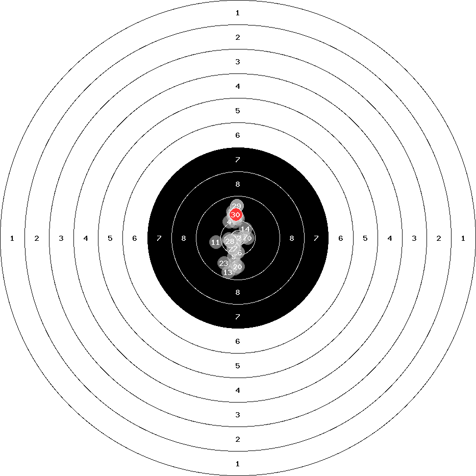 hit position: 0.93 mm left, 1.03 mm low