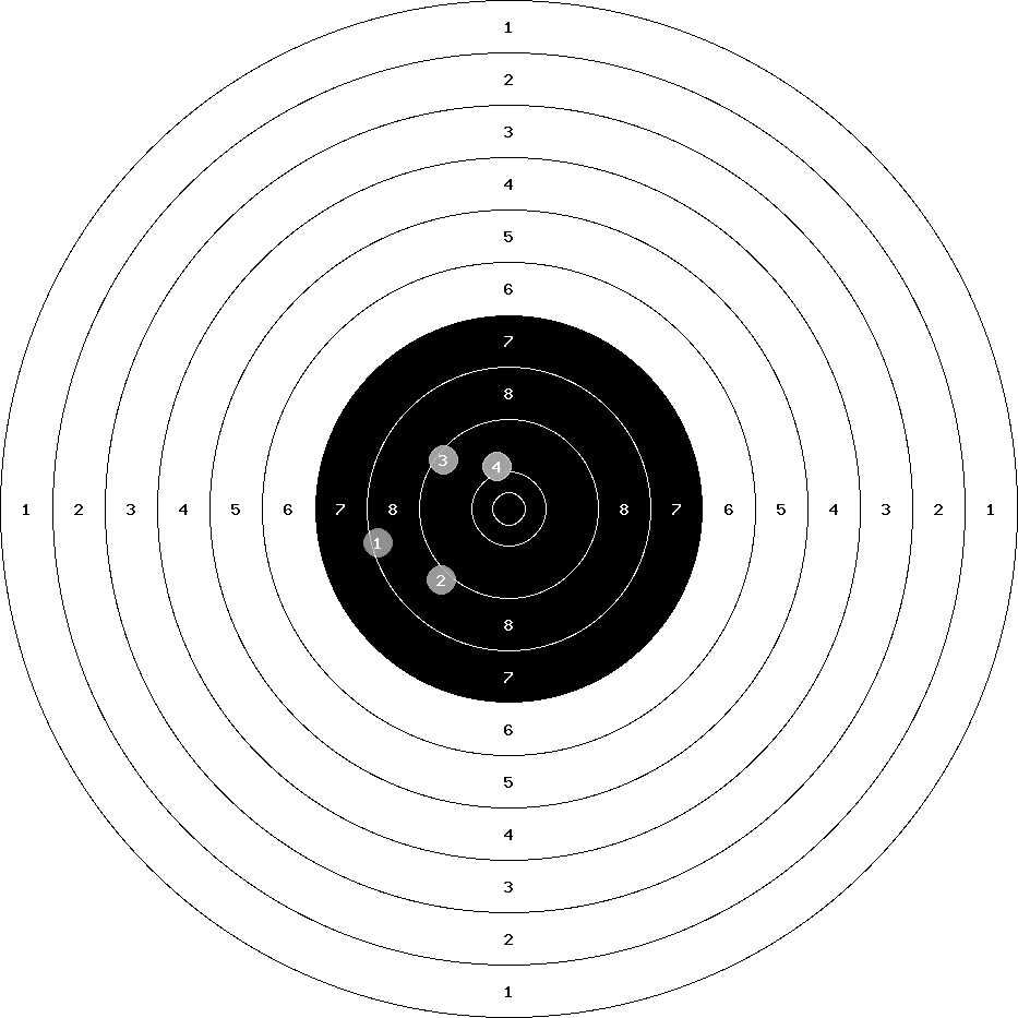 hit position: 4.26 mm left, 0.19 mm low