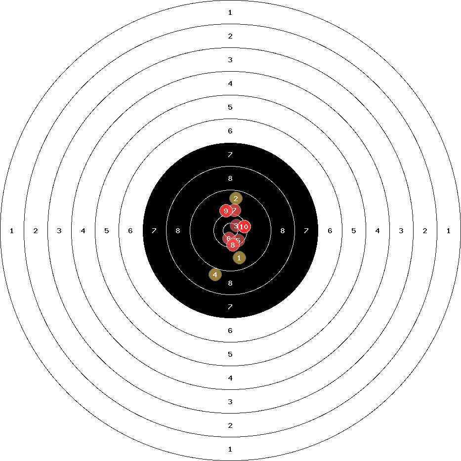 hit position: 0.93 mm right, 0.75 mm low