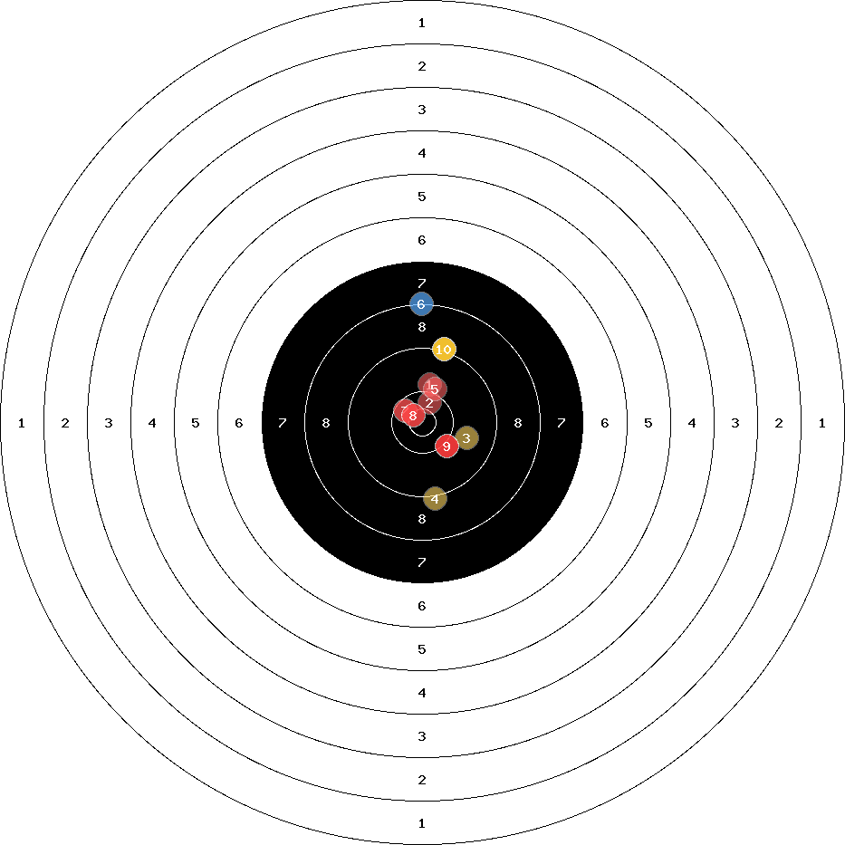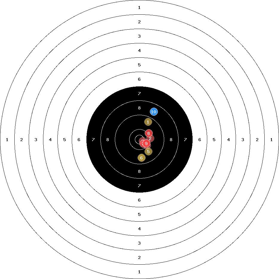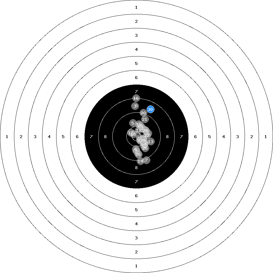 hit position: 2.57 mm right, 0.84 mm low