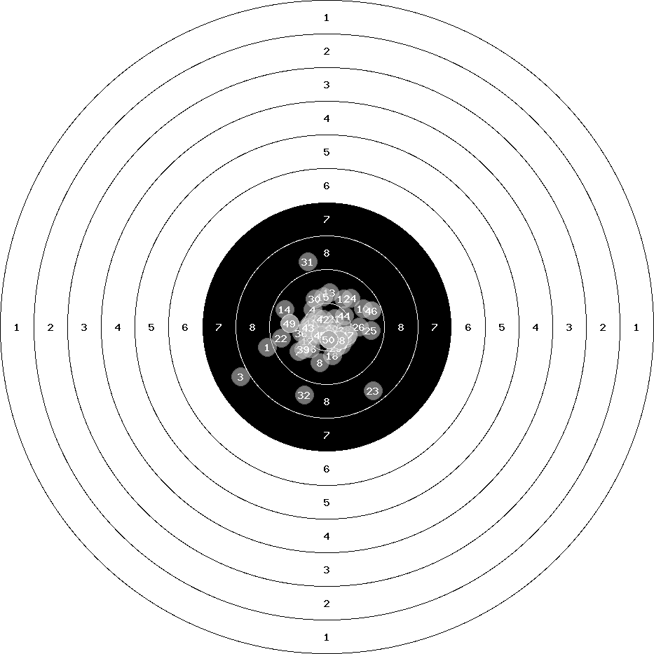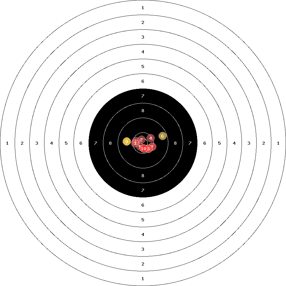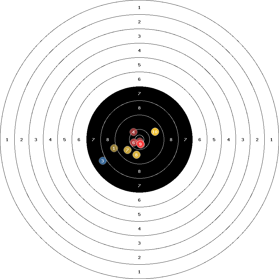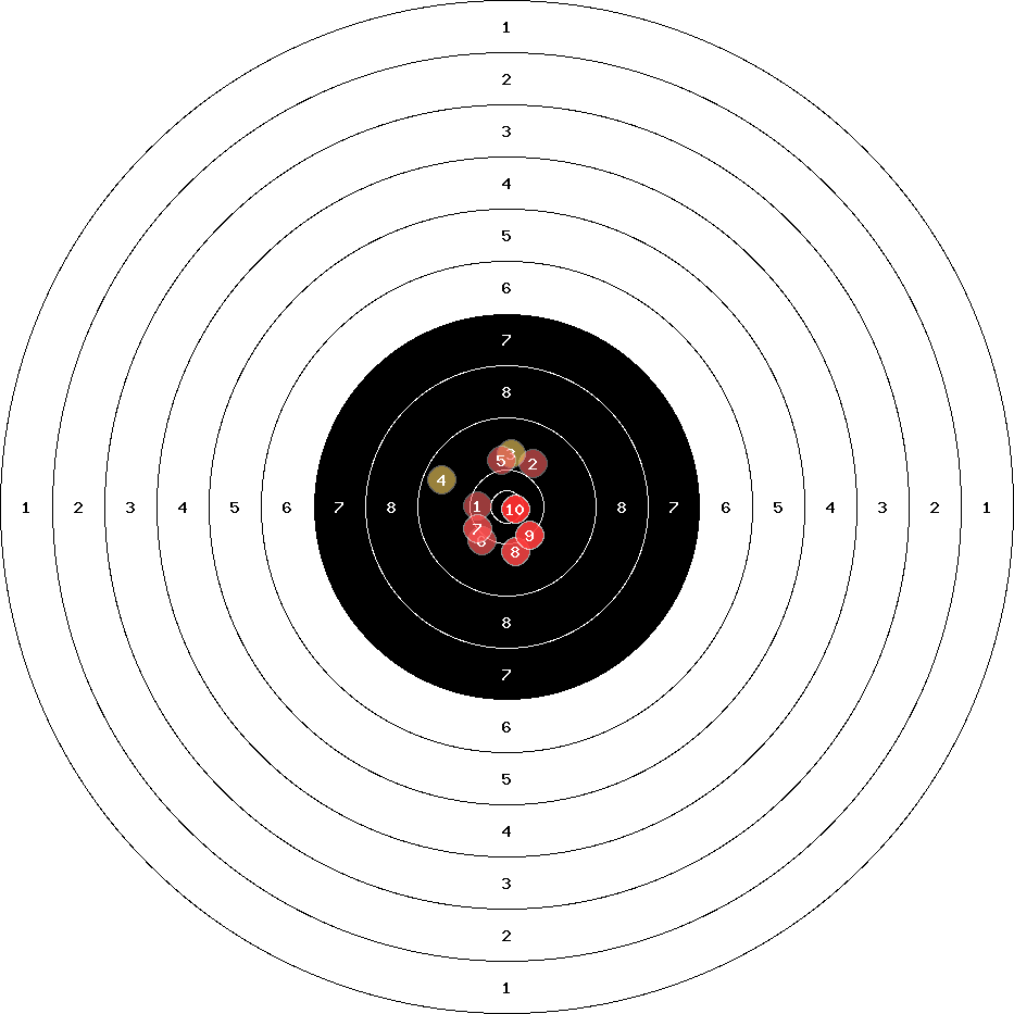 hit position: 3.96 mm left, 3.1 mm low