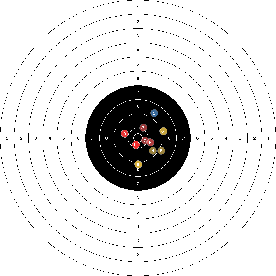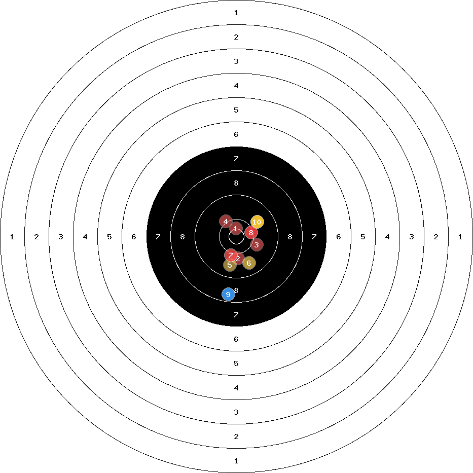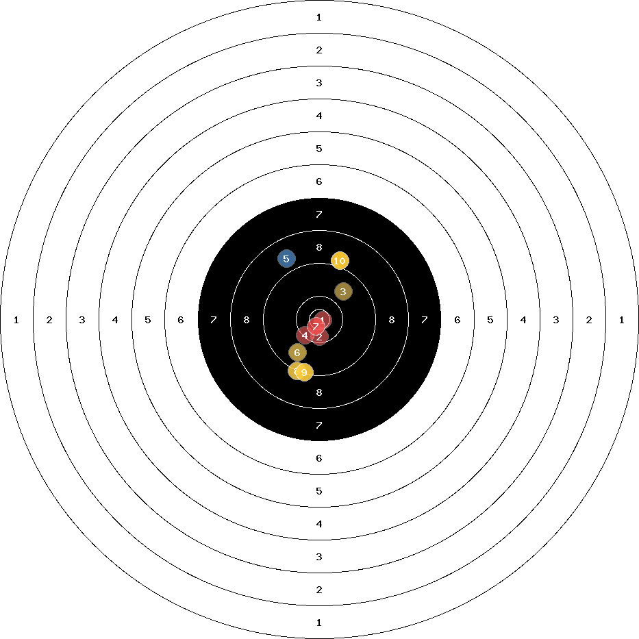 hit position: 4.69 mm right, 2.22 mm low