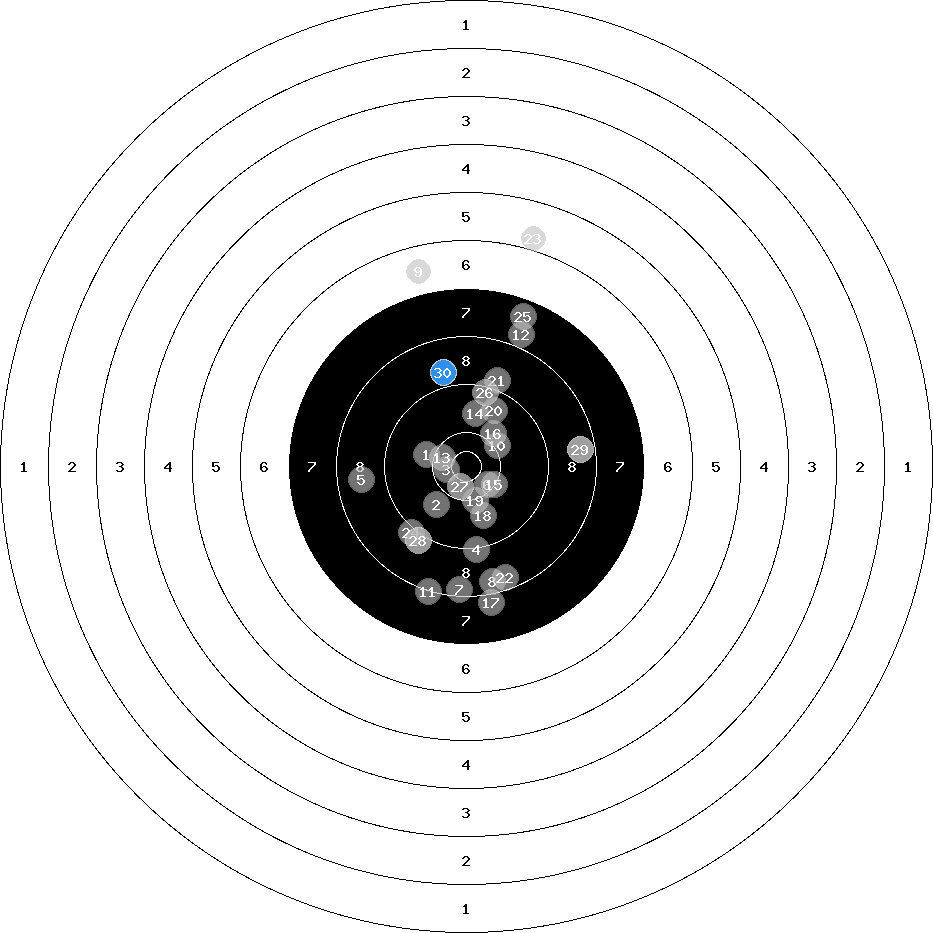hit position: 3.27 mm rechts, 6.35 mm hoch
