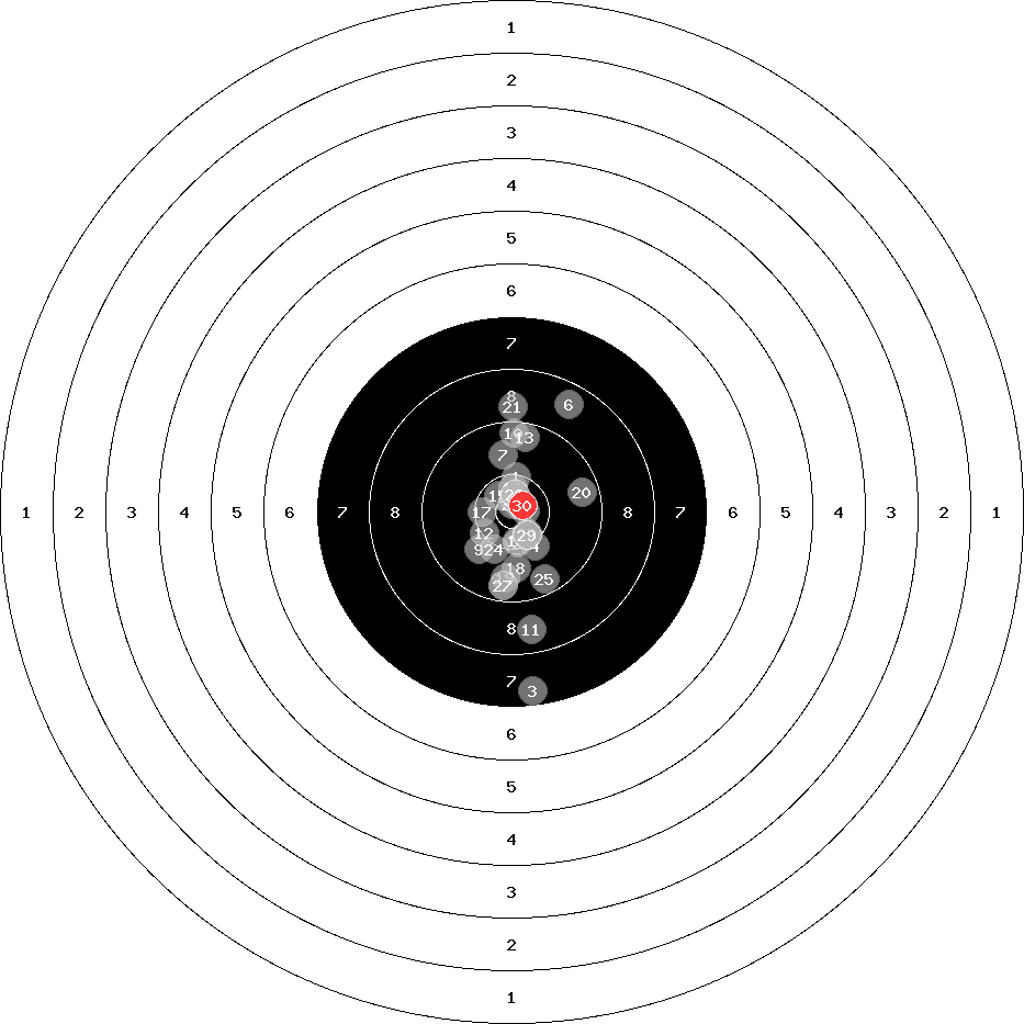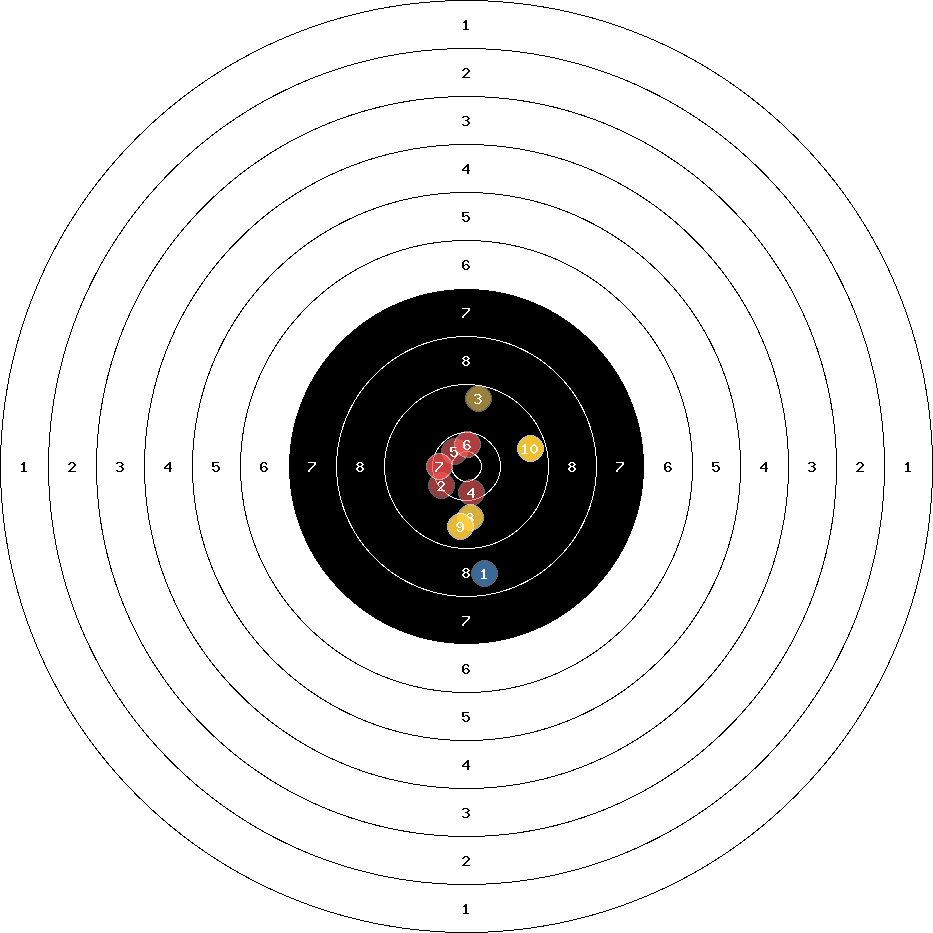 hit position: 1.43 mm rechts, 0.1 mm hoch