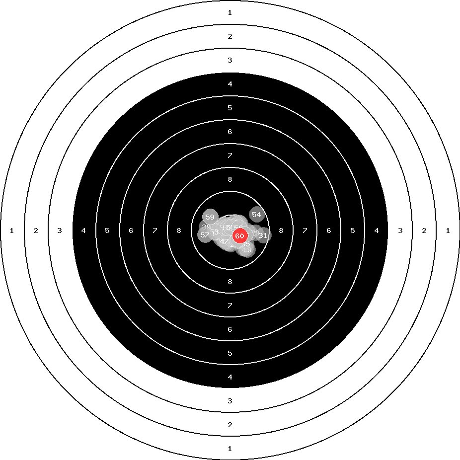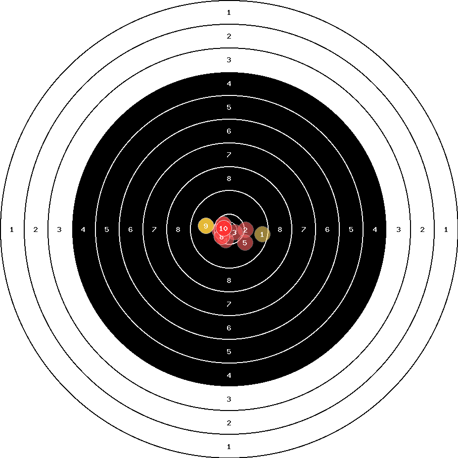 hit position: 0.32 mm right, 0.26 mm low
