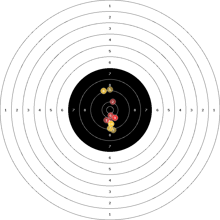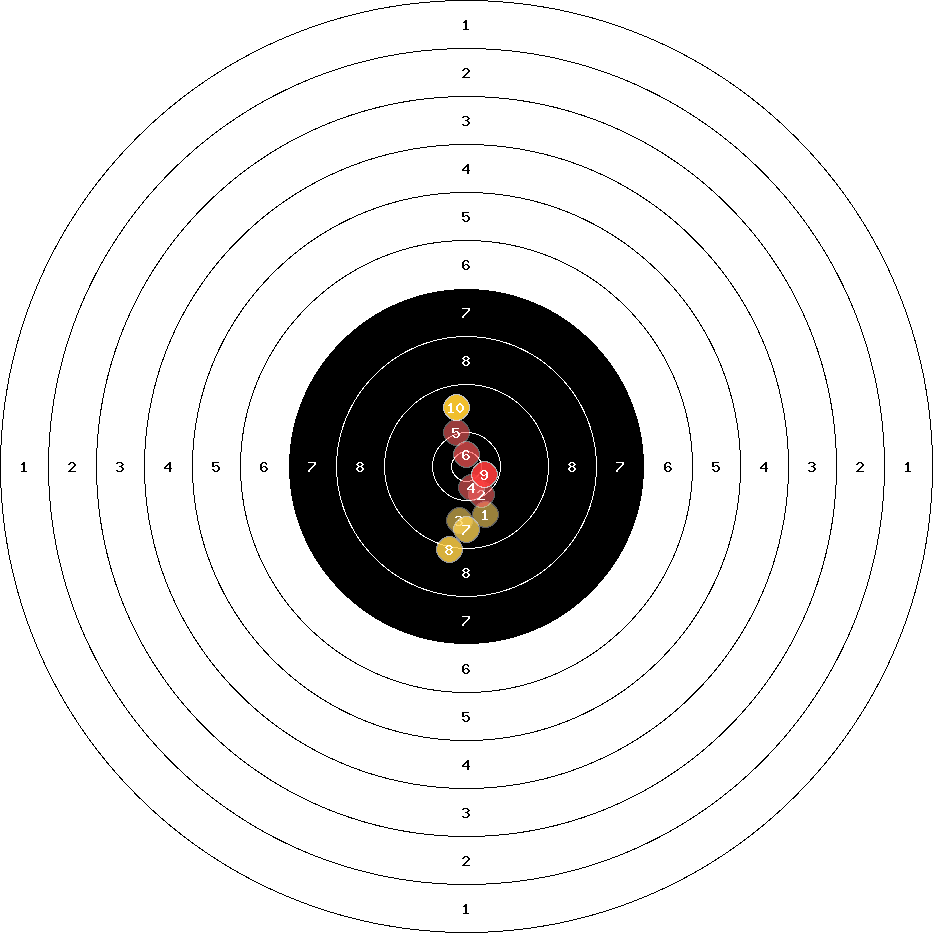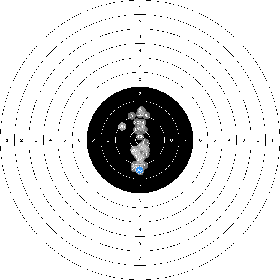 hit position: 1.24 mm left, 0.72 mm low