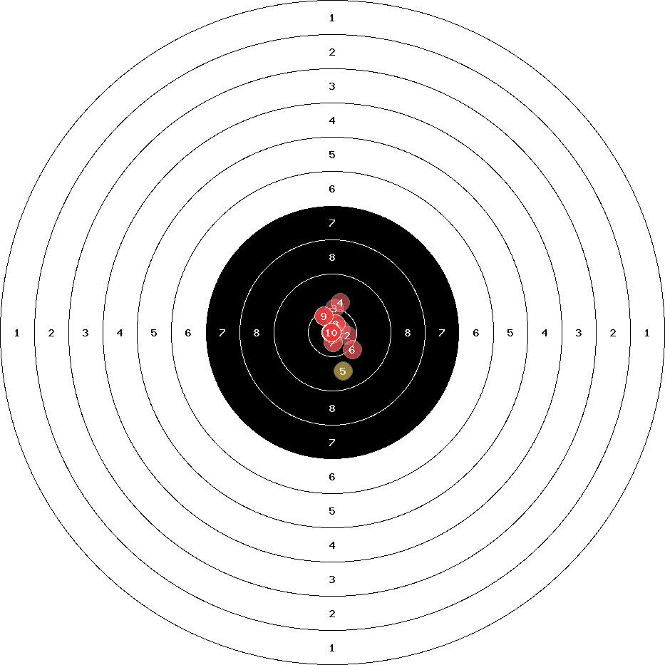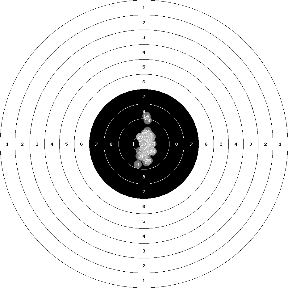 hit position: 1.26 mm right, 0.26 mm low