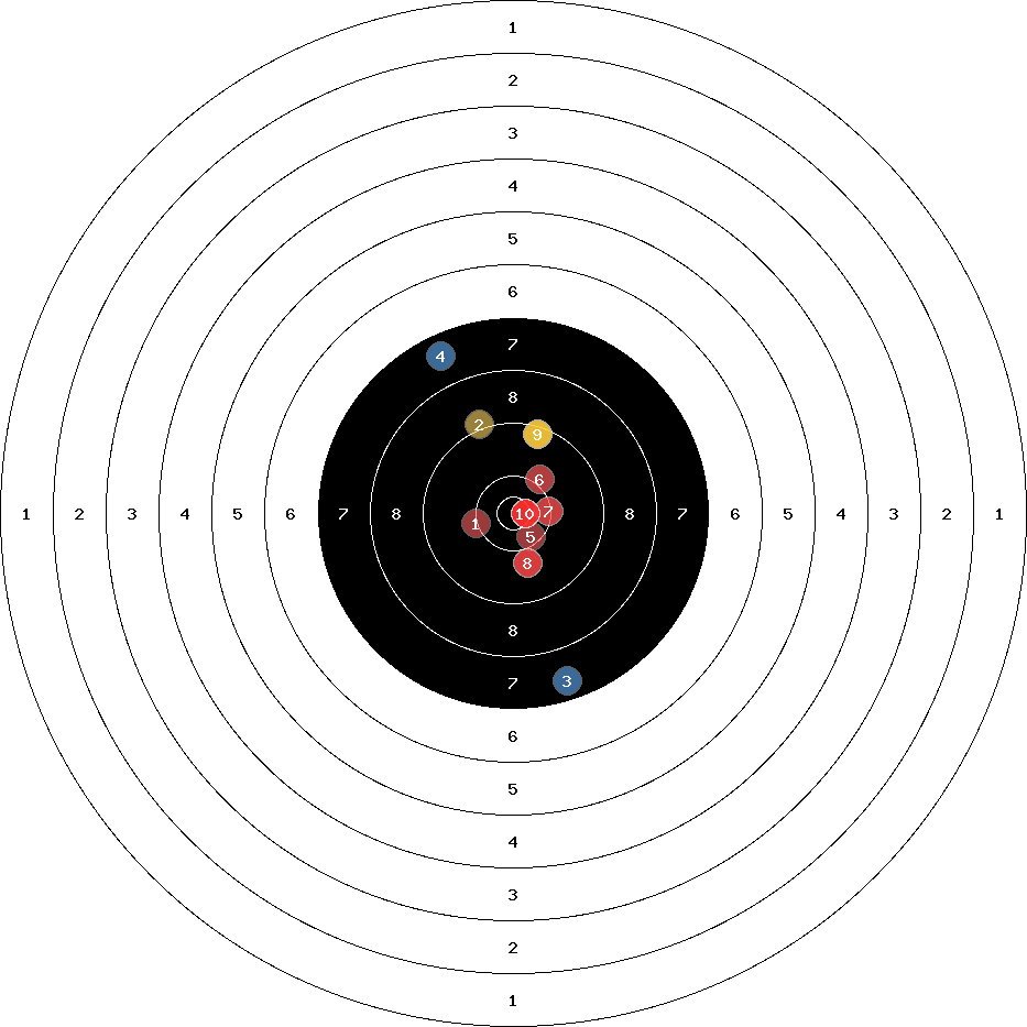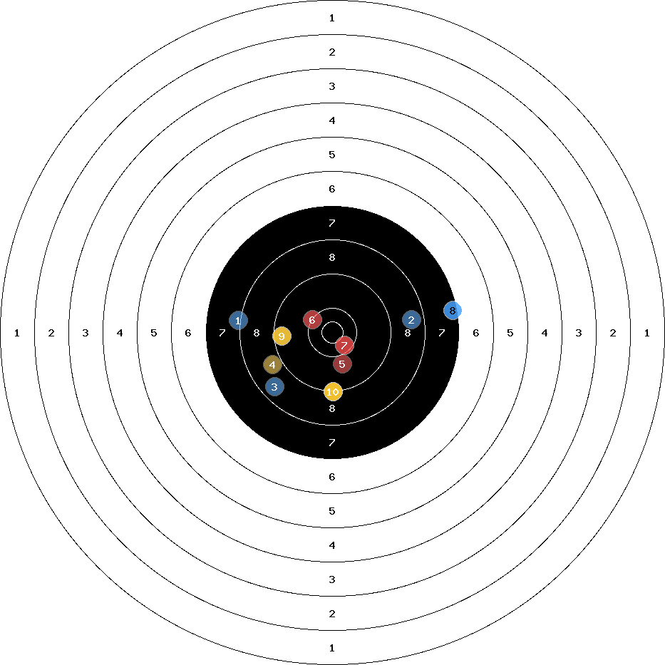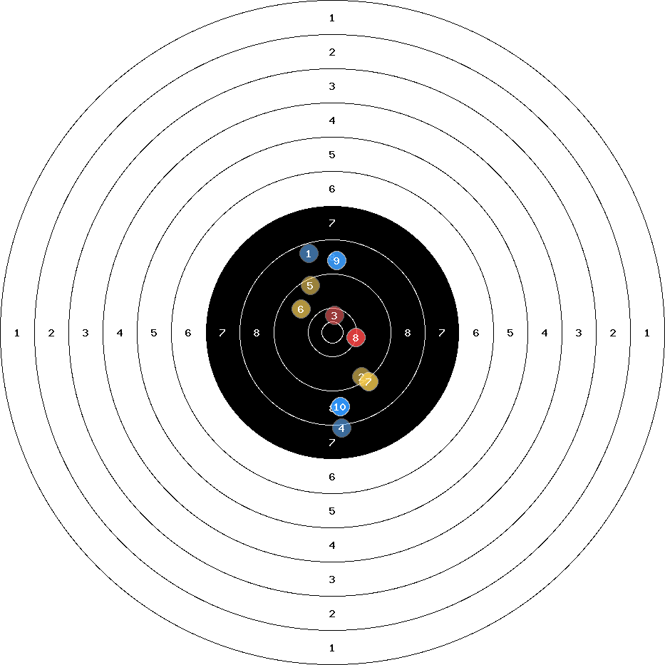 hit position: 0.87 mm right, 0.69 mm low