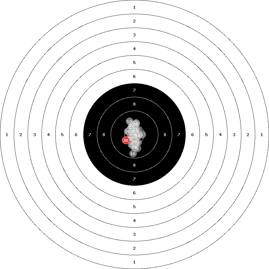 hit position: 0.07 mm left, 1.33 mm low