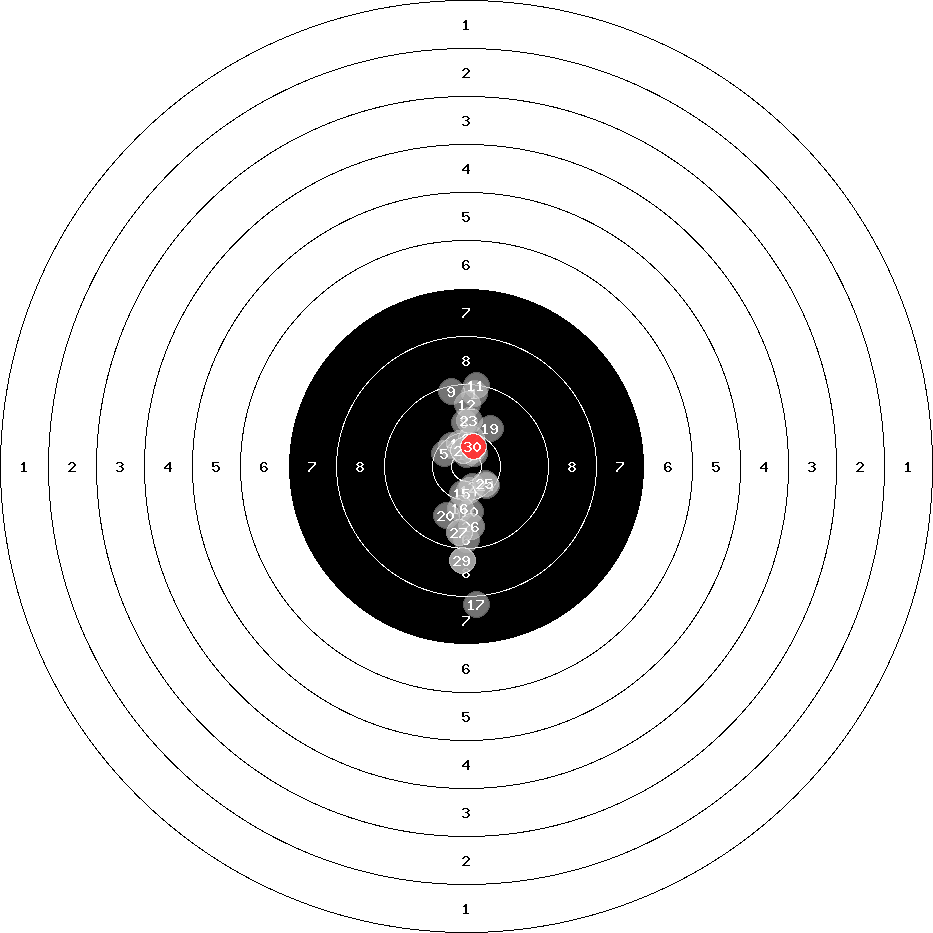 hit position: 0.22 mm right, 1.09 mm low