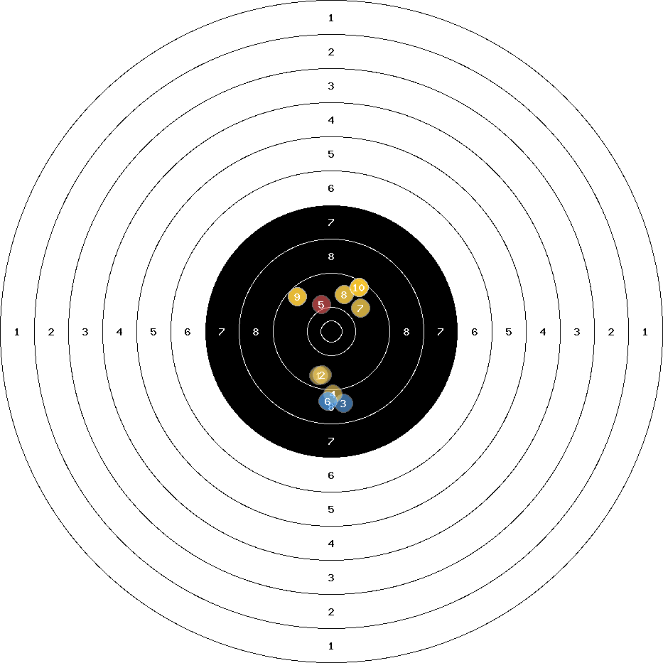 hit position: 1.37 mm right, 7.47 mm low