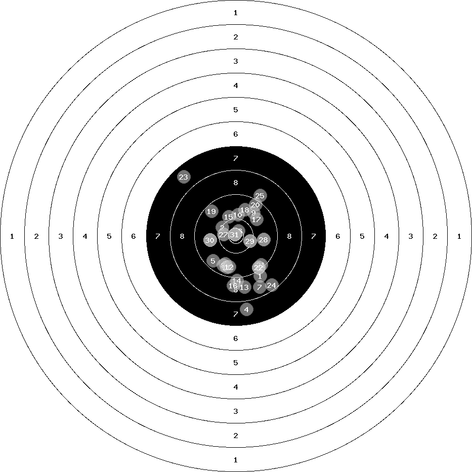 hit position: 0.31 mm right, 2.93 mm low