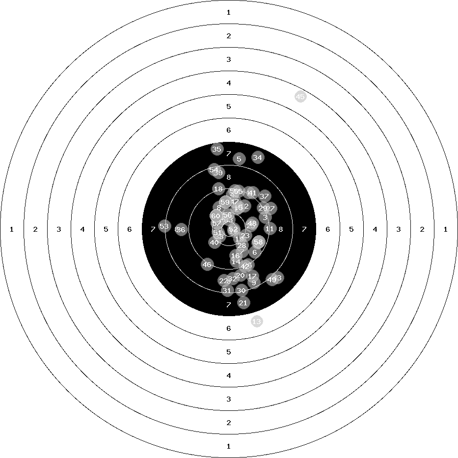 hit position: 6.76 mm right, 0.6 mm high