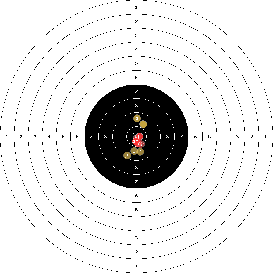hit position: 0.46 mm right, 2.31 mm low