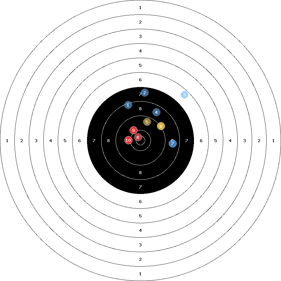 hit position: 0.9 mm right, 1.06 mm low