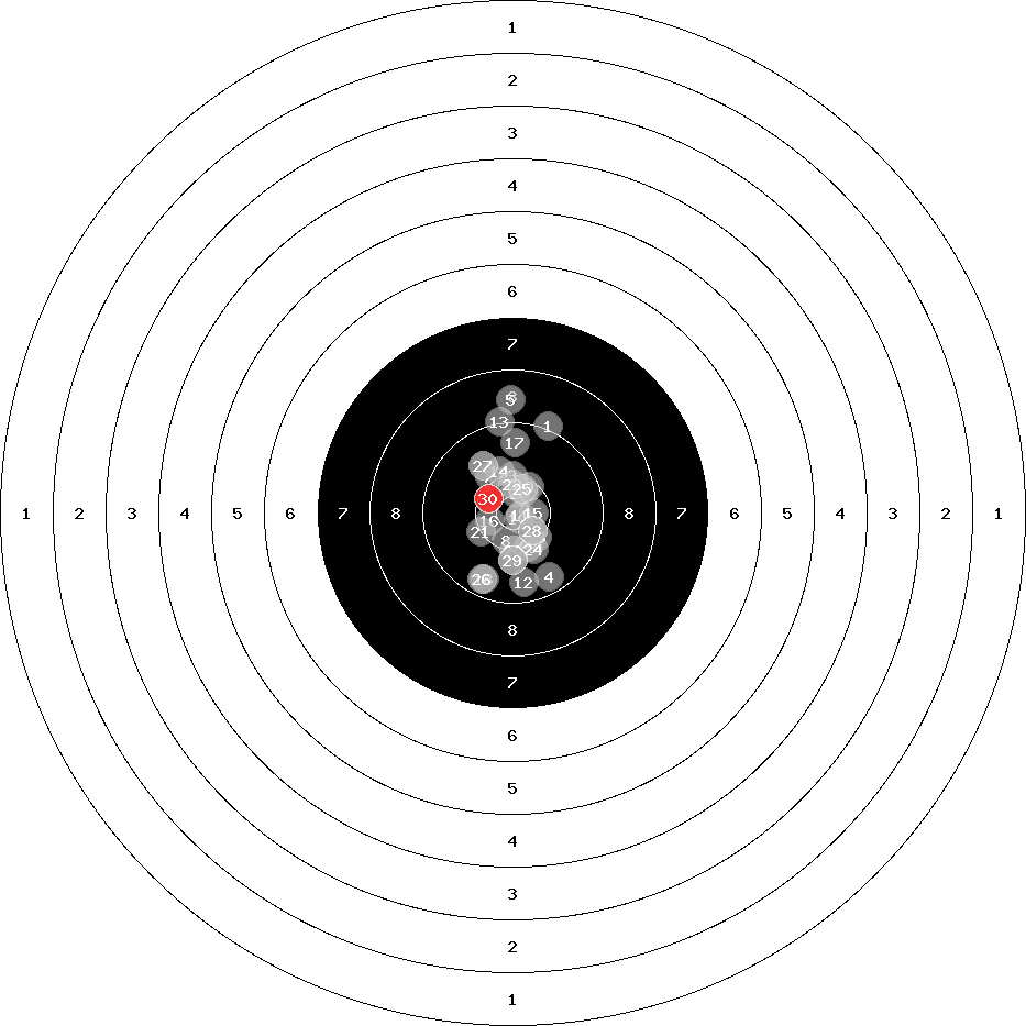 hit position: 0.3 mm left, 0.18 mm low
