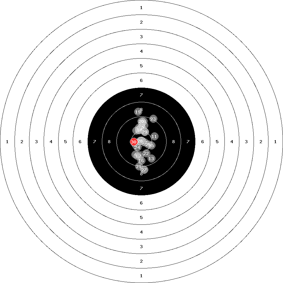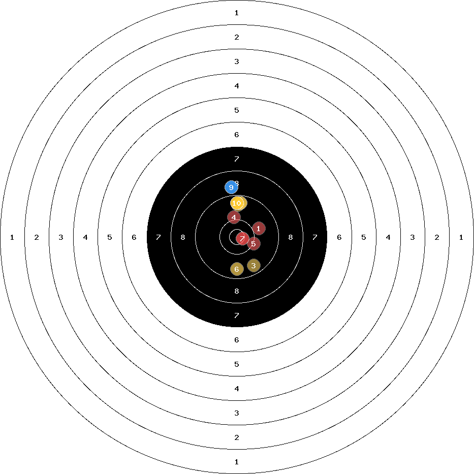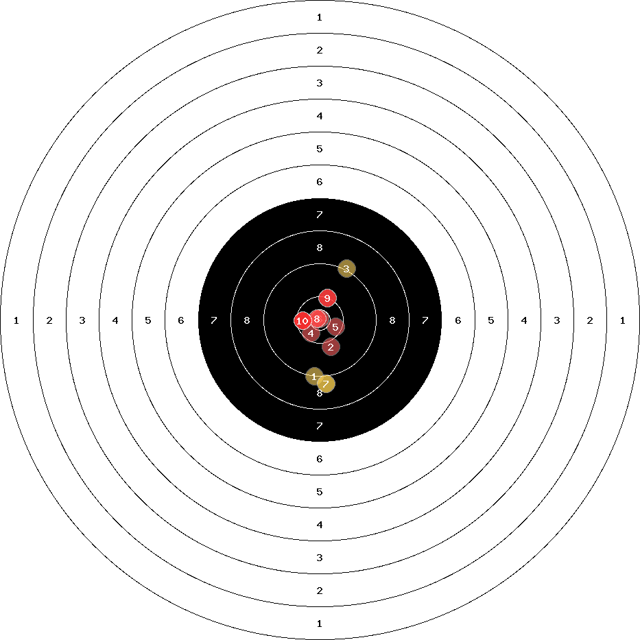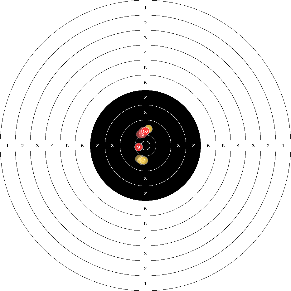 hit position: 0.8 mm right, 2.23 mm low