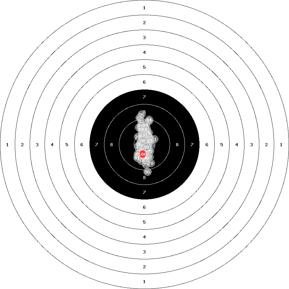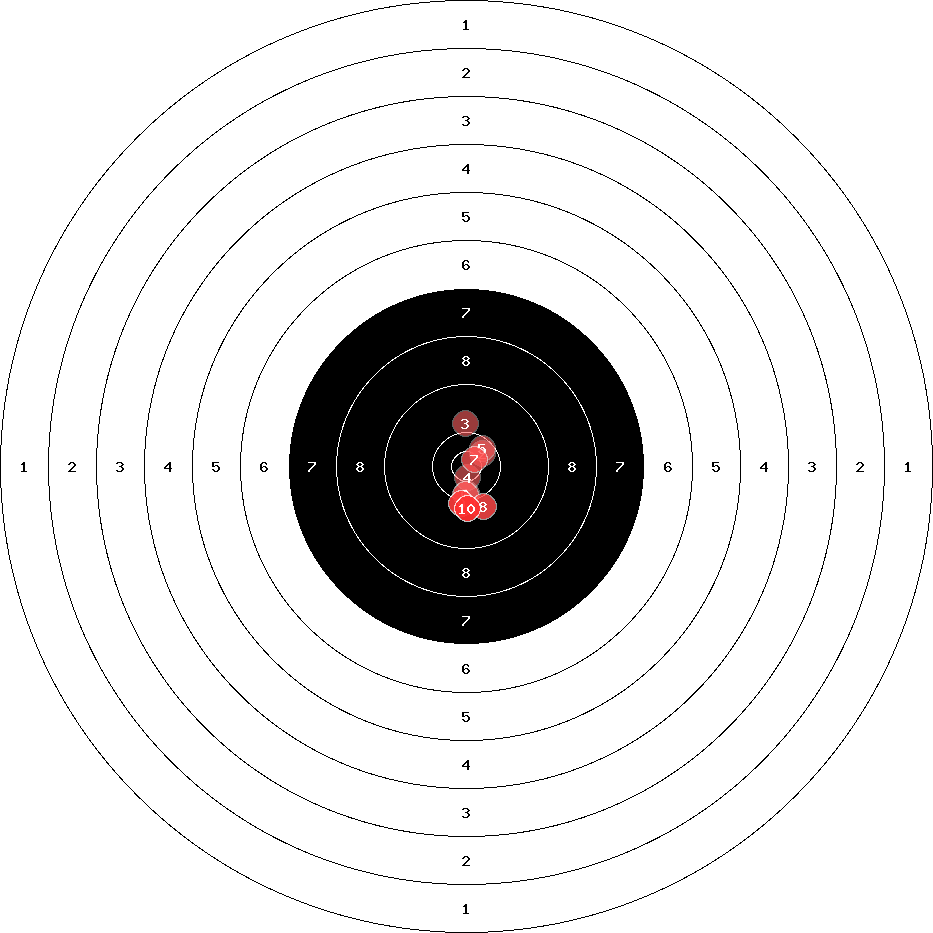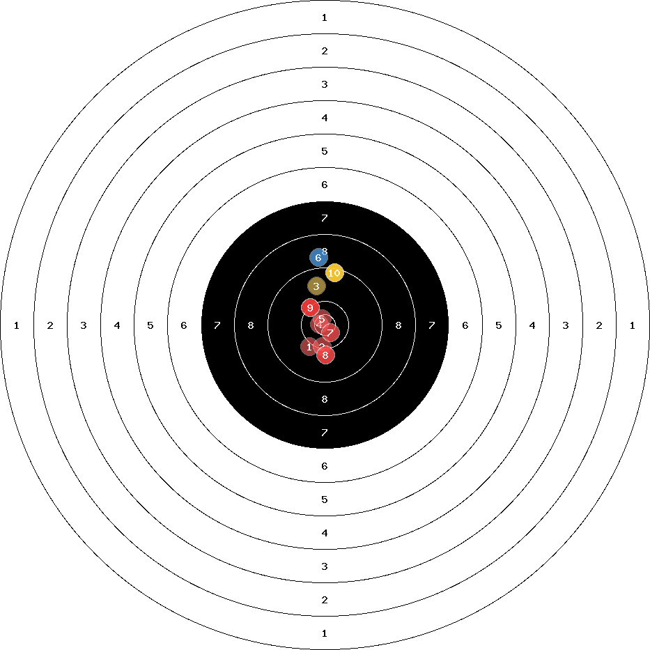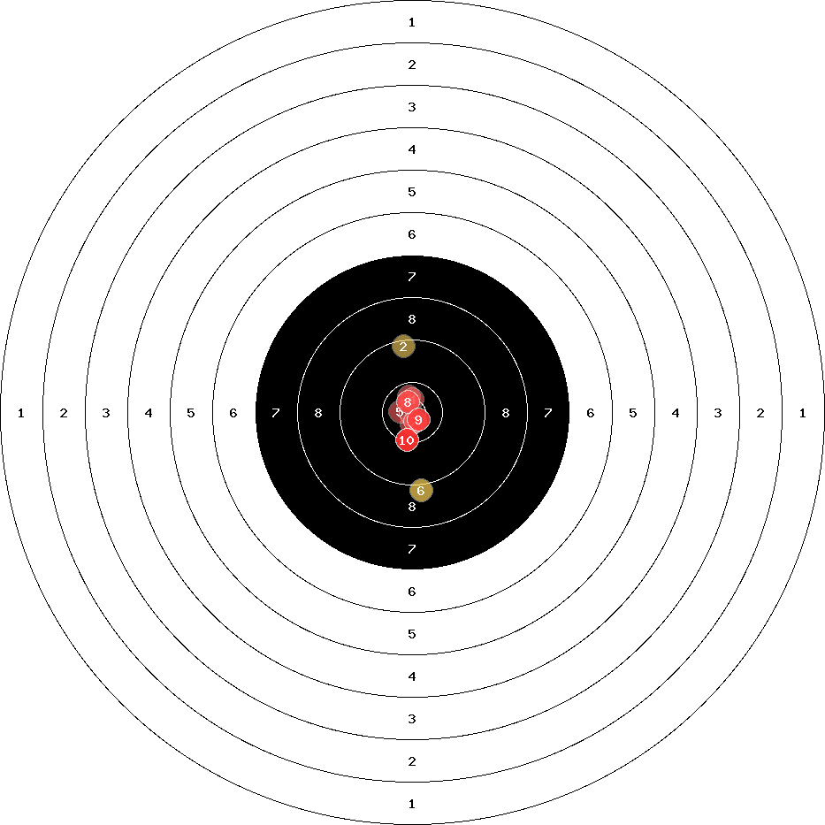 hit position: 0.5 mm left, 0.08 mm low