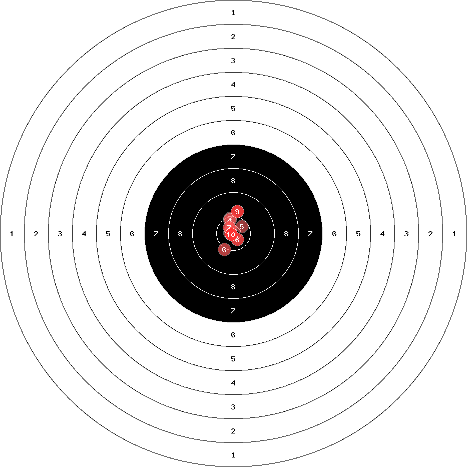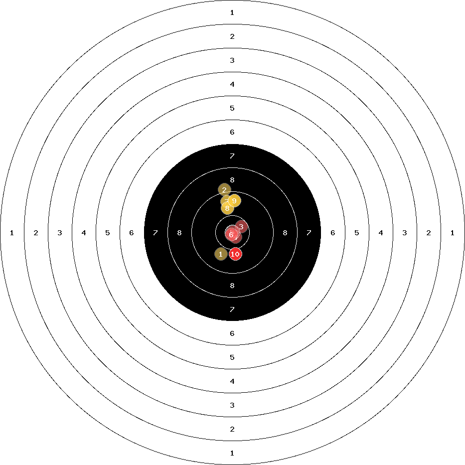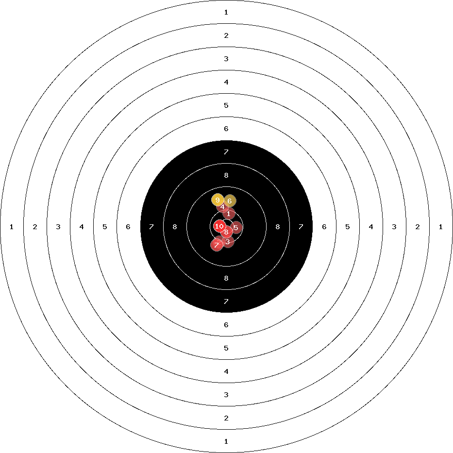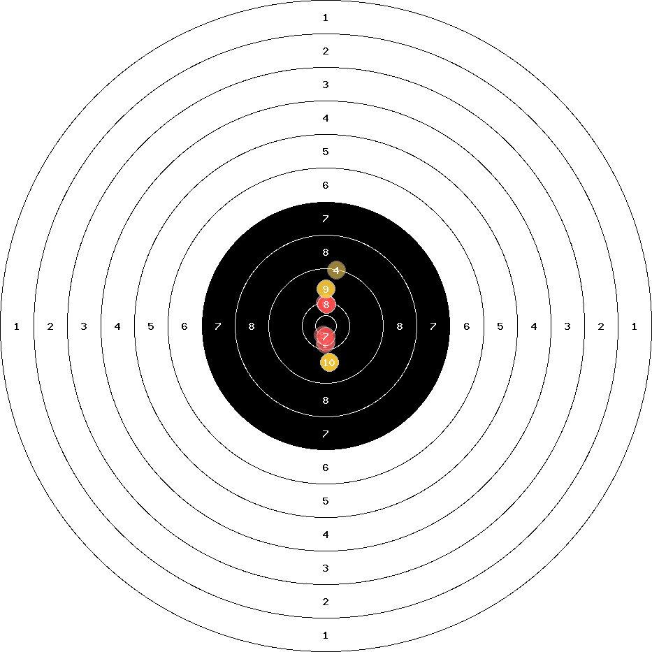 hit position: 0.9 mm right, 1.75 mm low