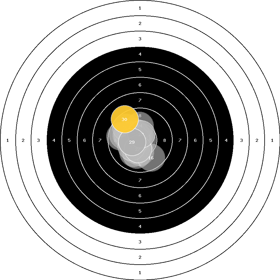 hit position: 0.58 mm left, 0.71 mm low