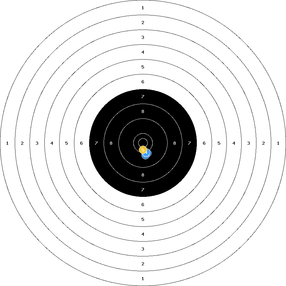 hit position: 0.13 mm right, 0.44 mm low