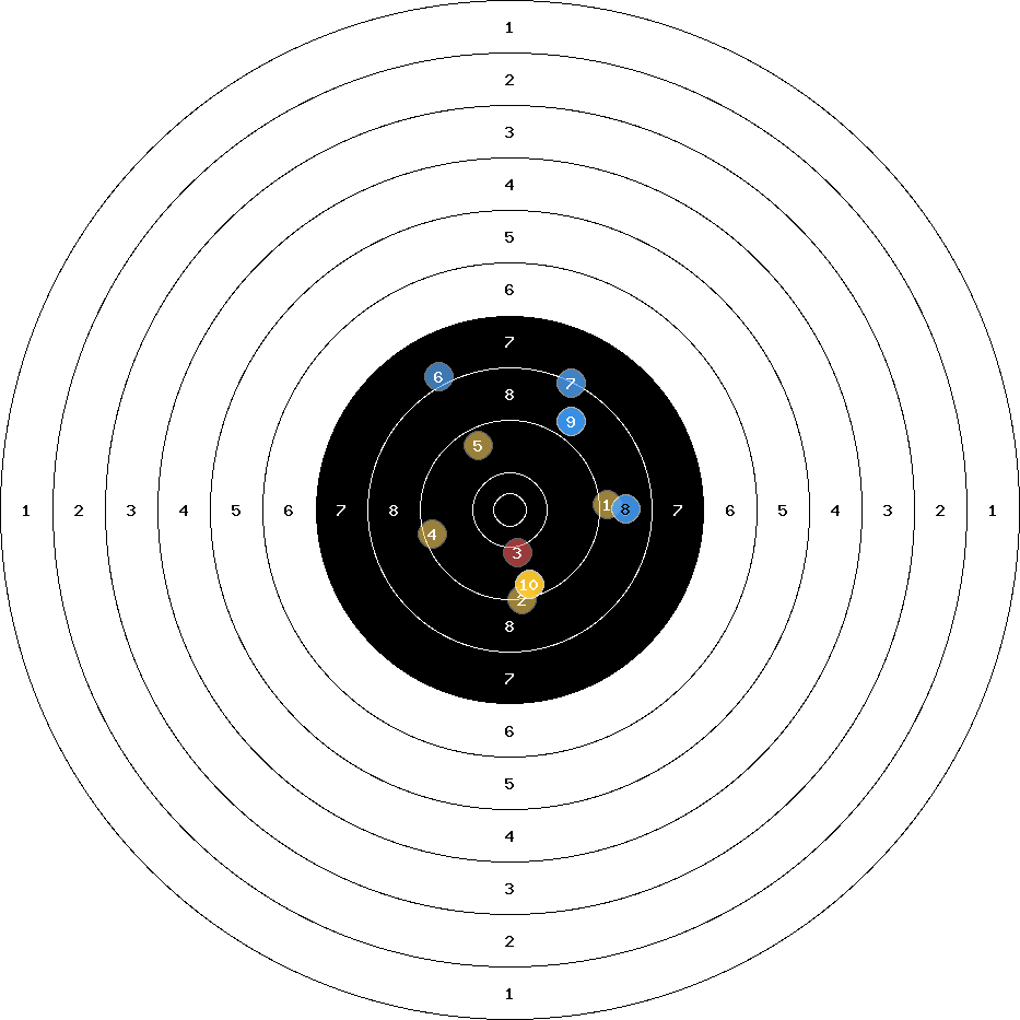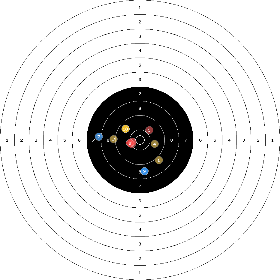 hit position: 2.99 mm rechts, 2.91 mm hoch