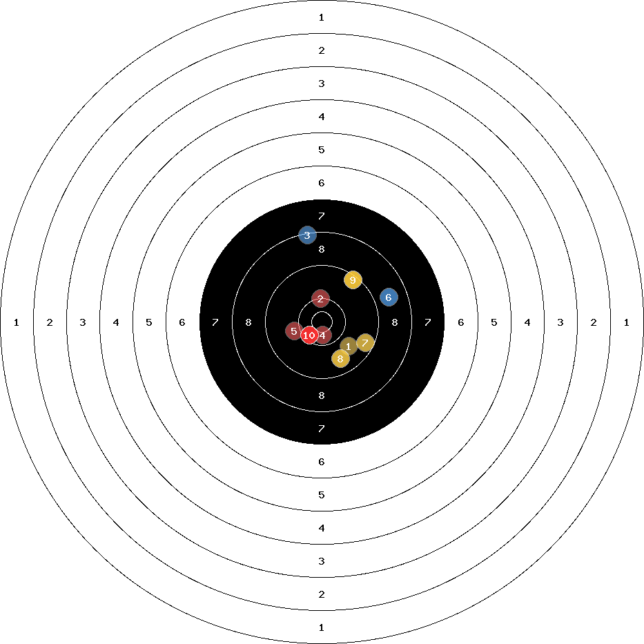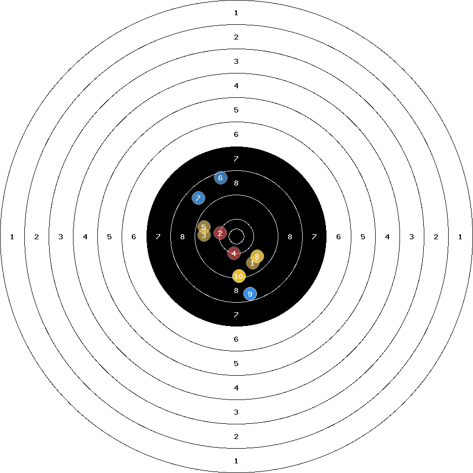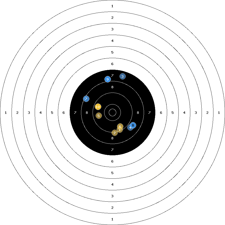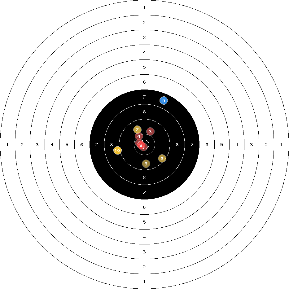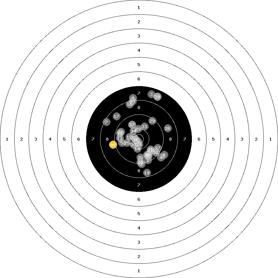 hit position: 0.48 mm rechts, 0.46 mm hoch