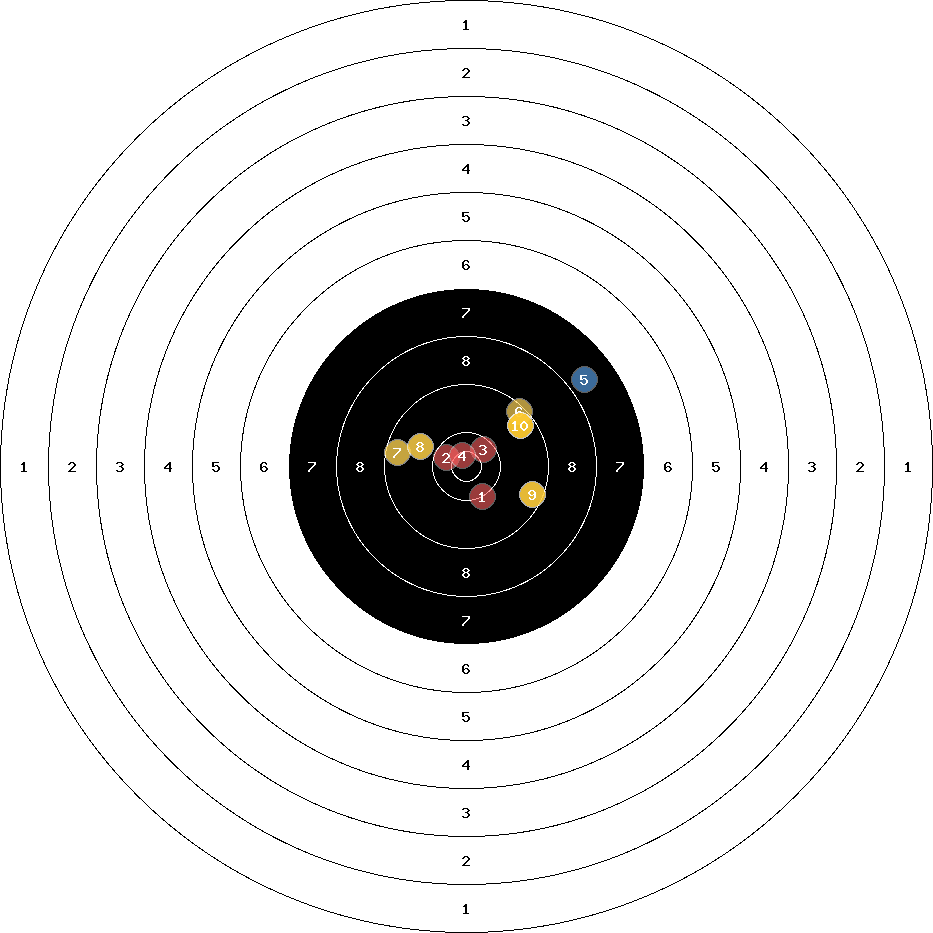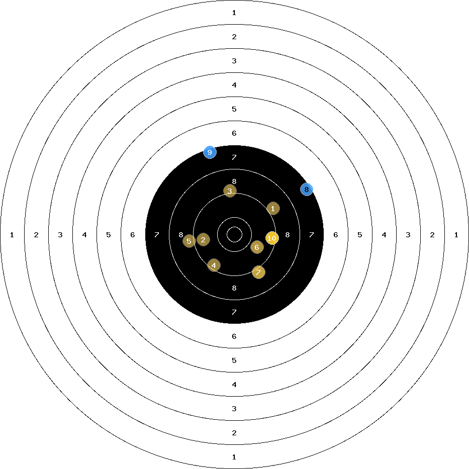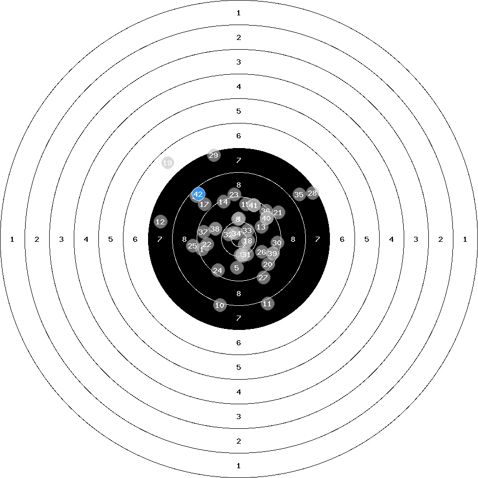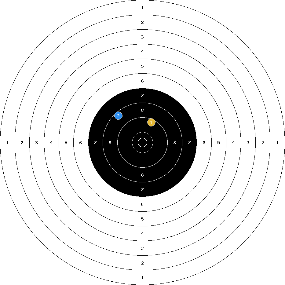 hit position: 2.28 mm rechts, 3.34 mm hoch