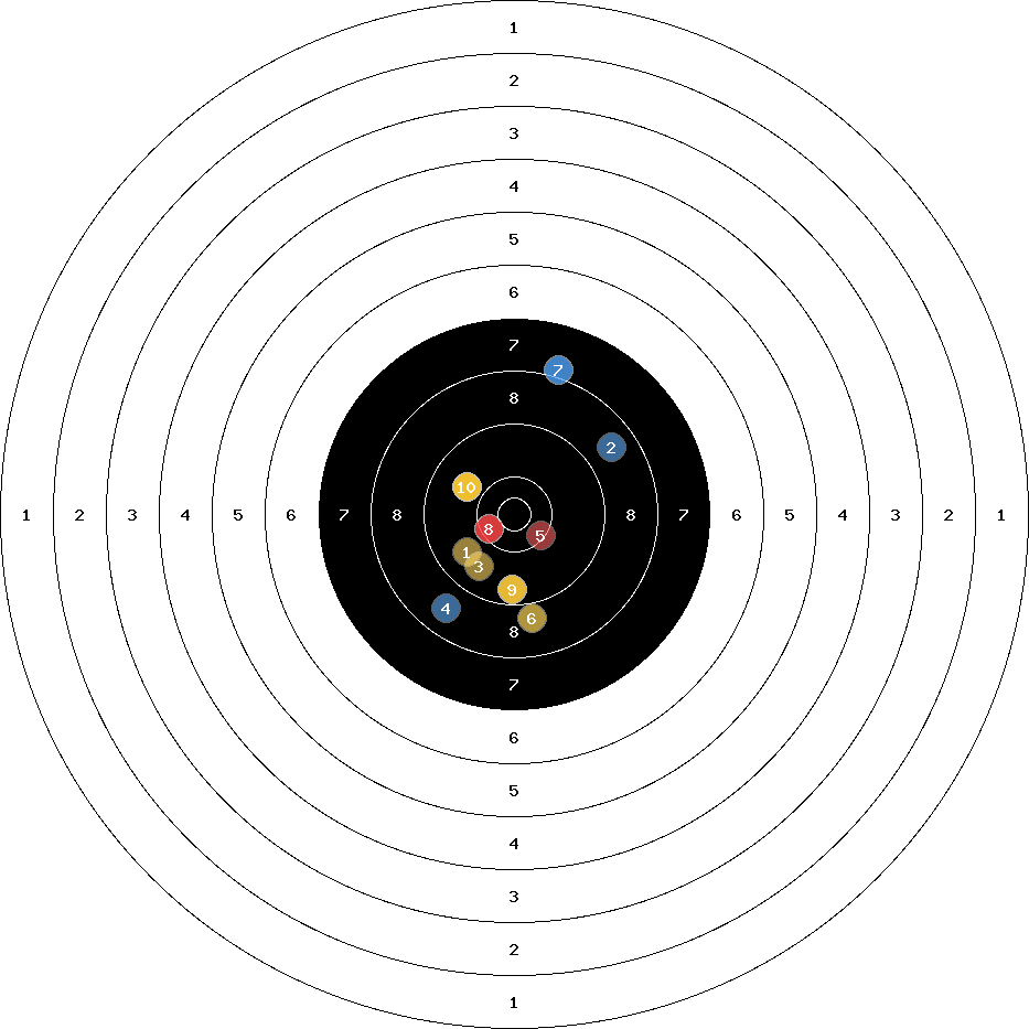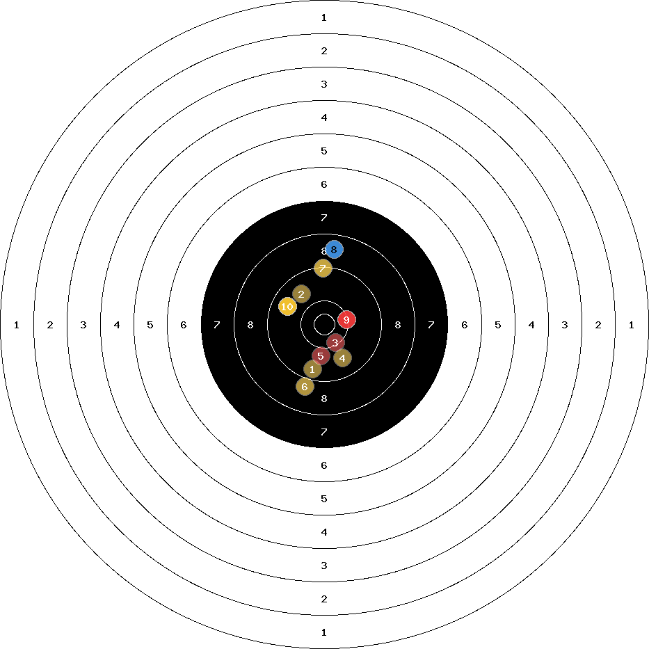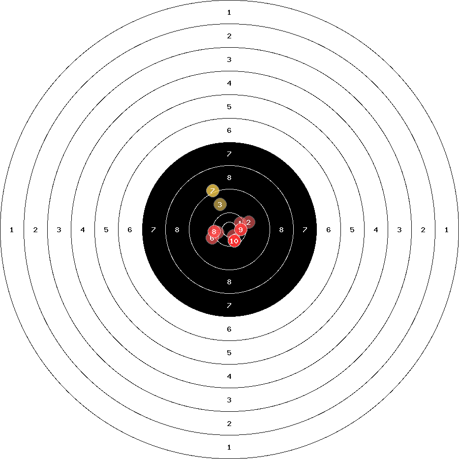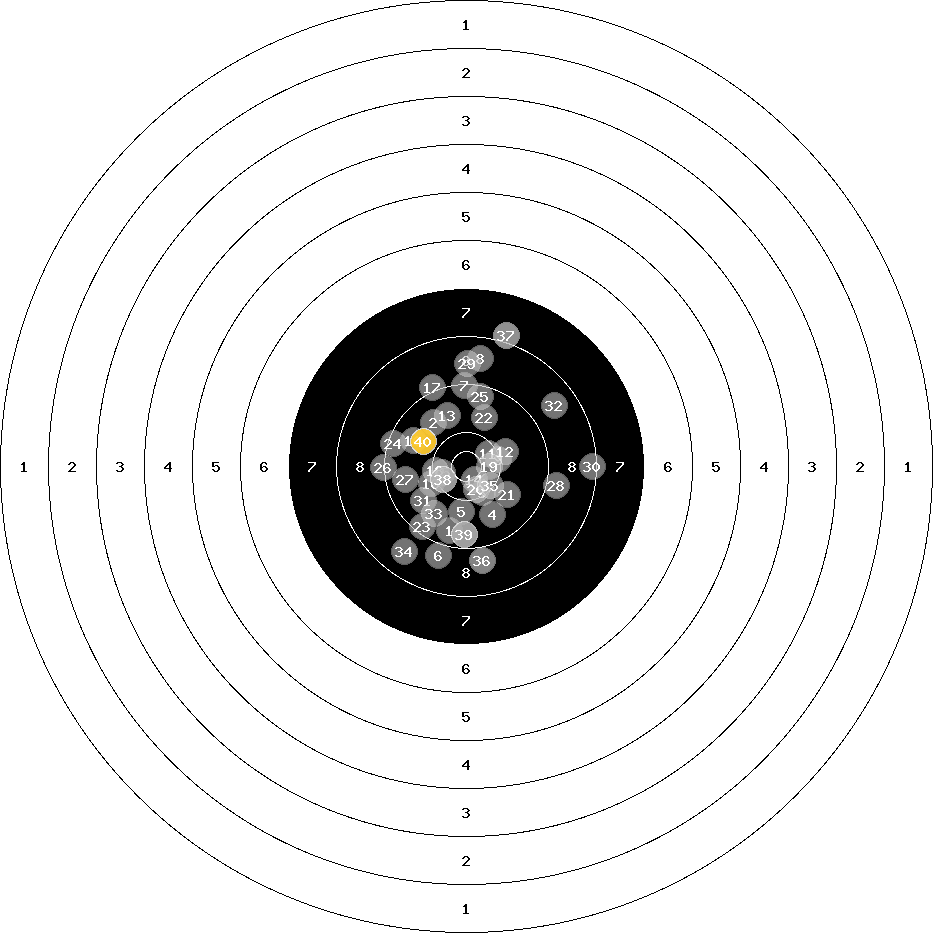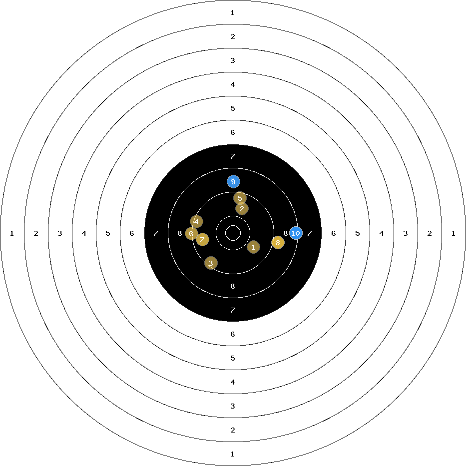 hit position: 0.48 mm rechts, 2.05 mm hoch