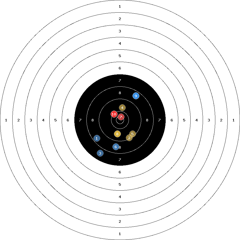 hit position: 0.79 mm left, 2.51 mm low