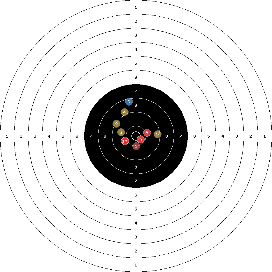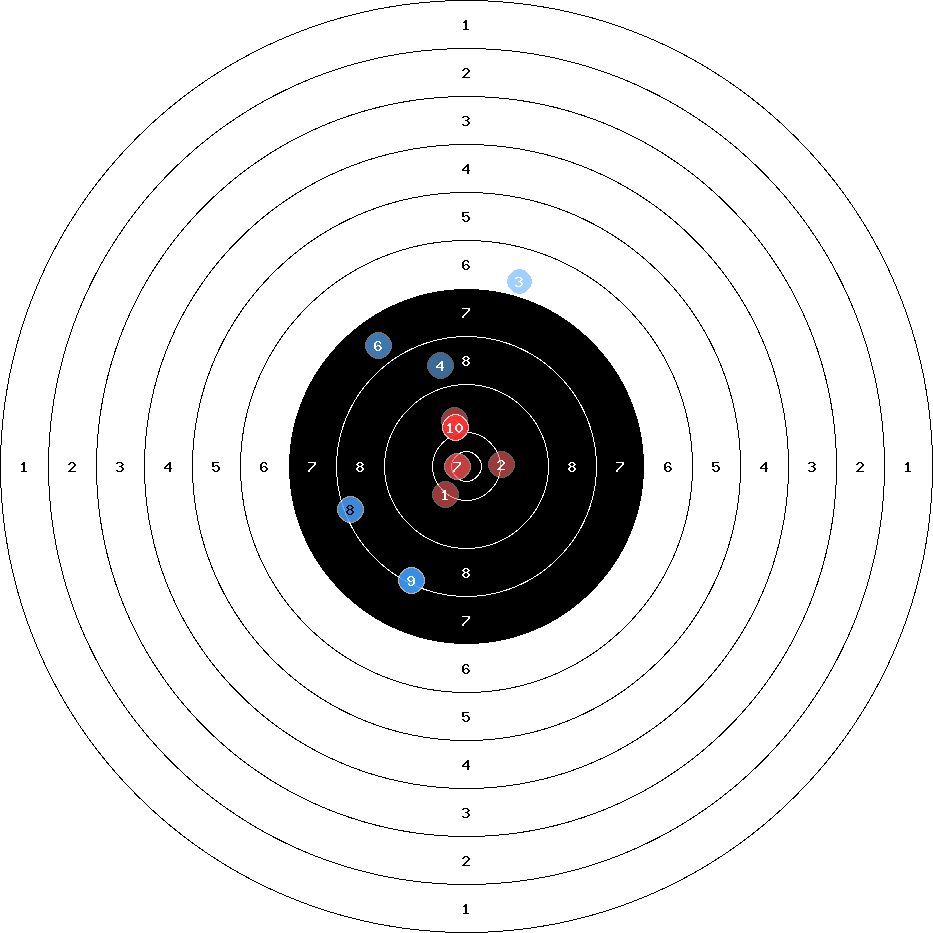 hit position: 3.23 mm links, 2.36 mm tief