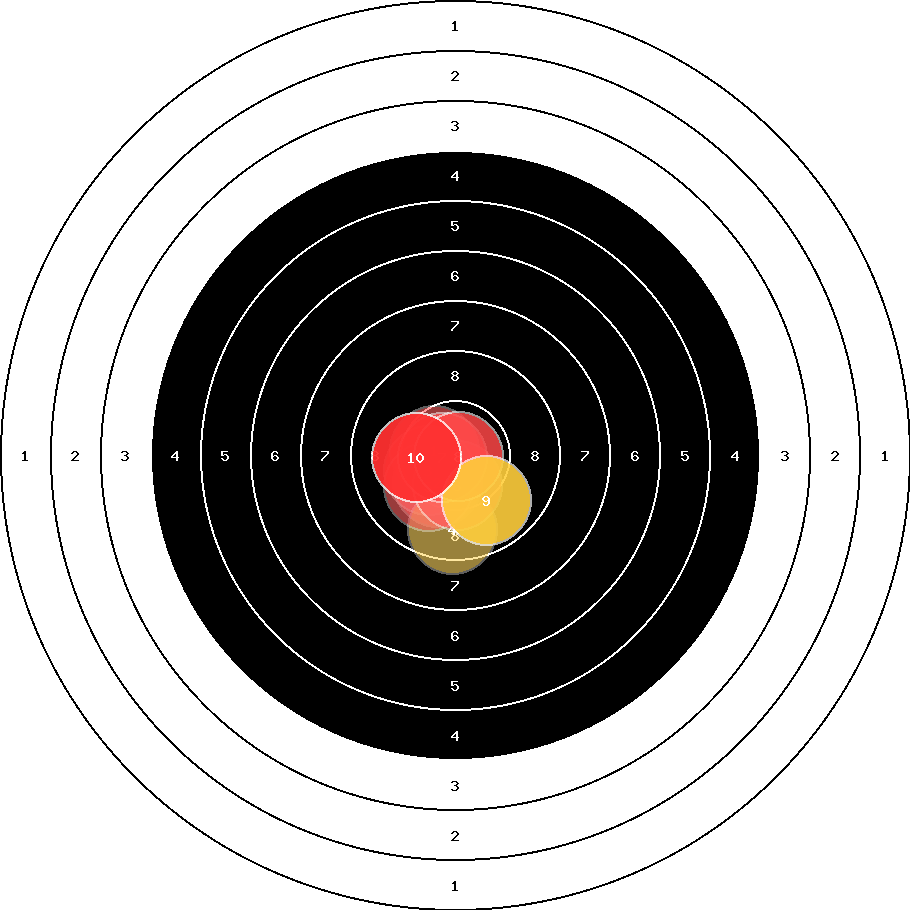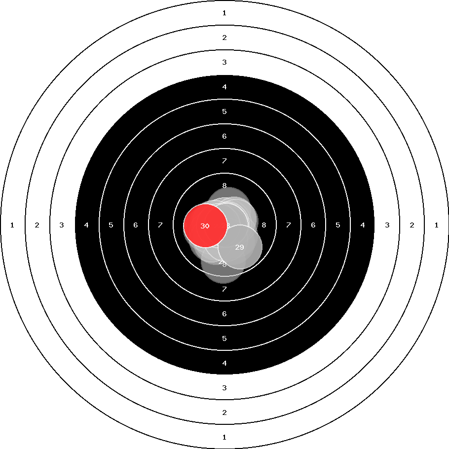 hit position: 0.23 mm left, 0.46 mm low