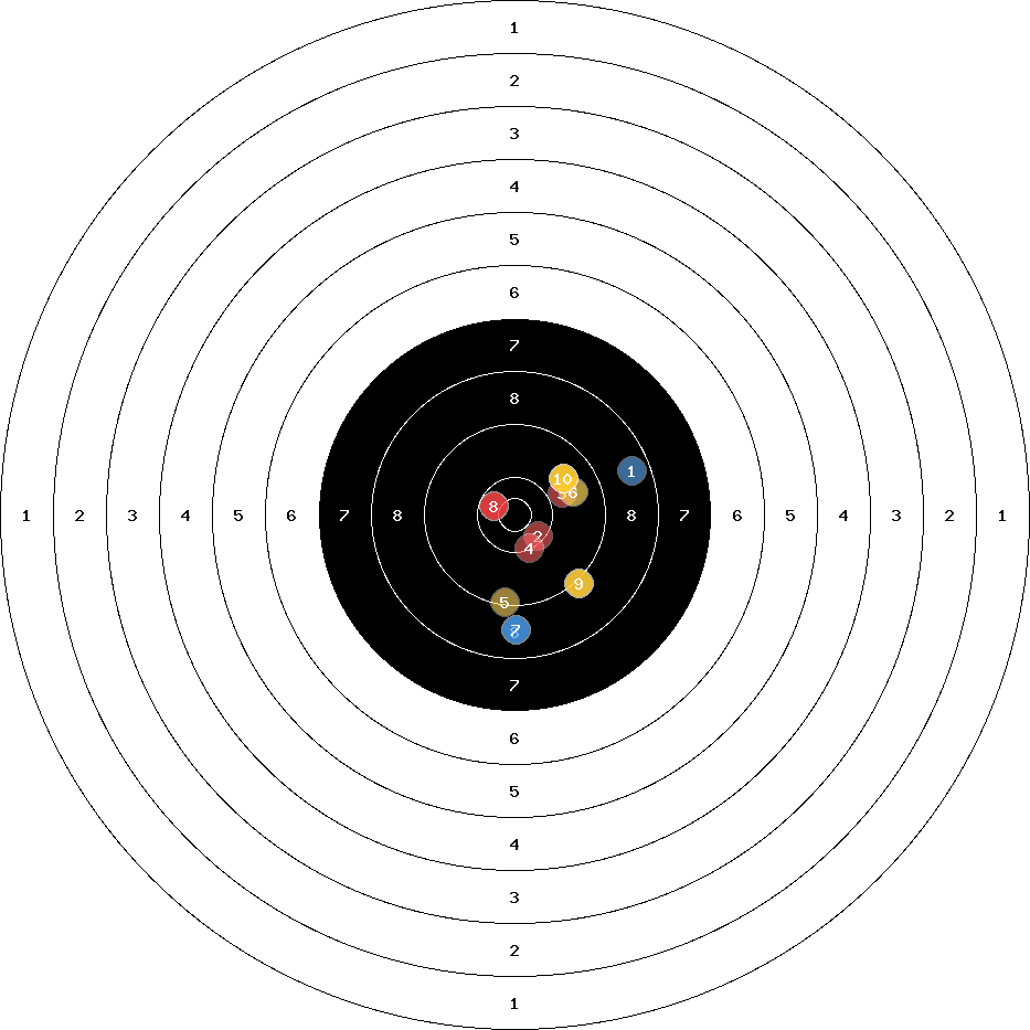hit position: 3.42 mm right, 2.24 mm low