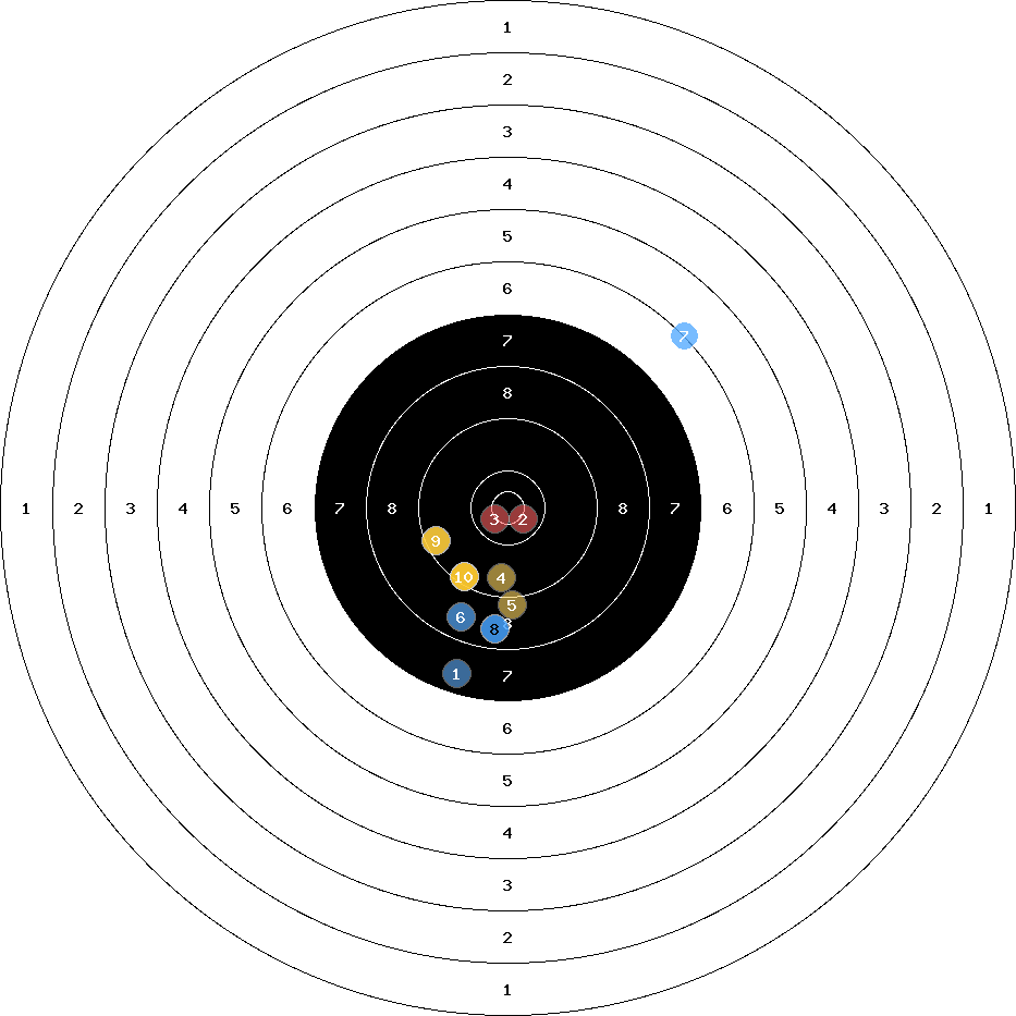 hit position: 1.68 mm left, 7.32 mm low
