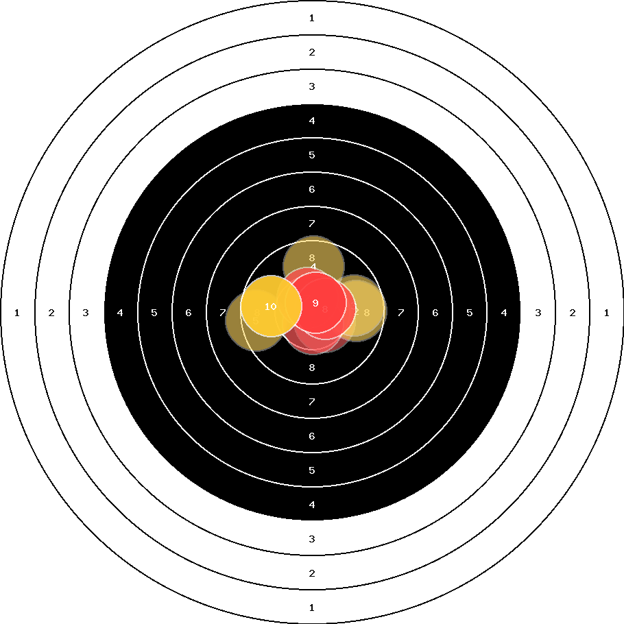 hit position: 0.93 mm left, 0.4 mm low
