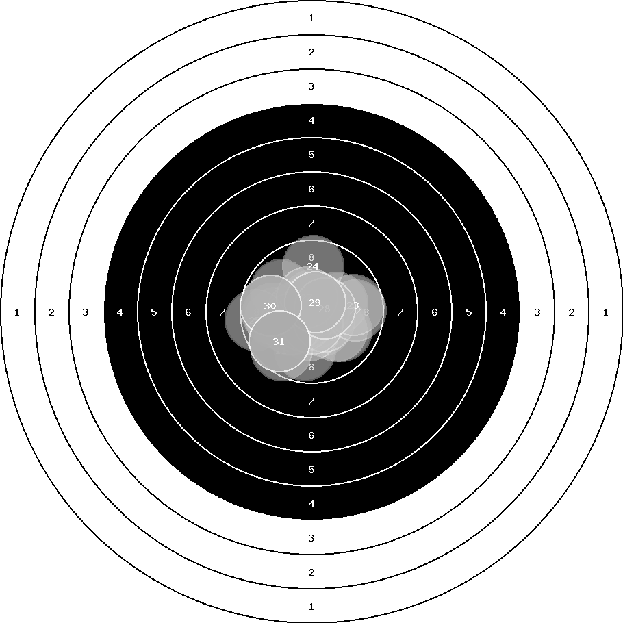 hit position: 0.37 mm left, 0.33 mm low