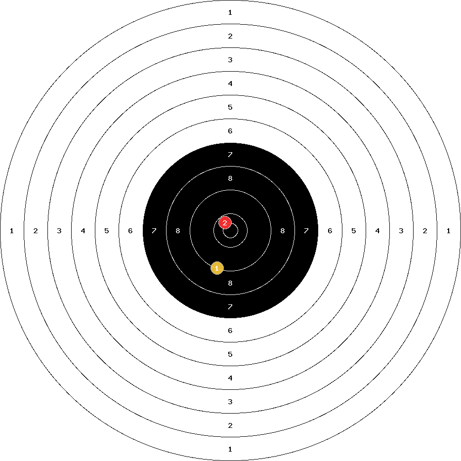 hit position: 4.64 mm left, 1.36 mm high