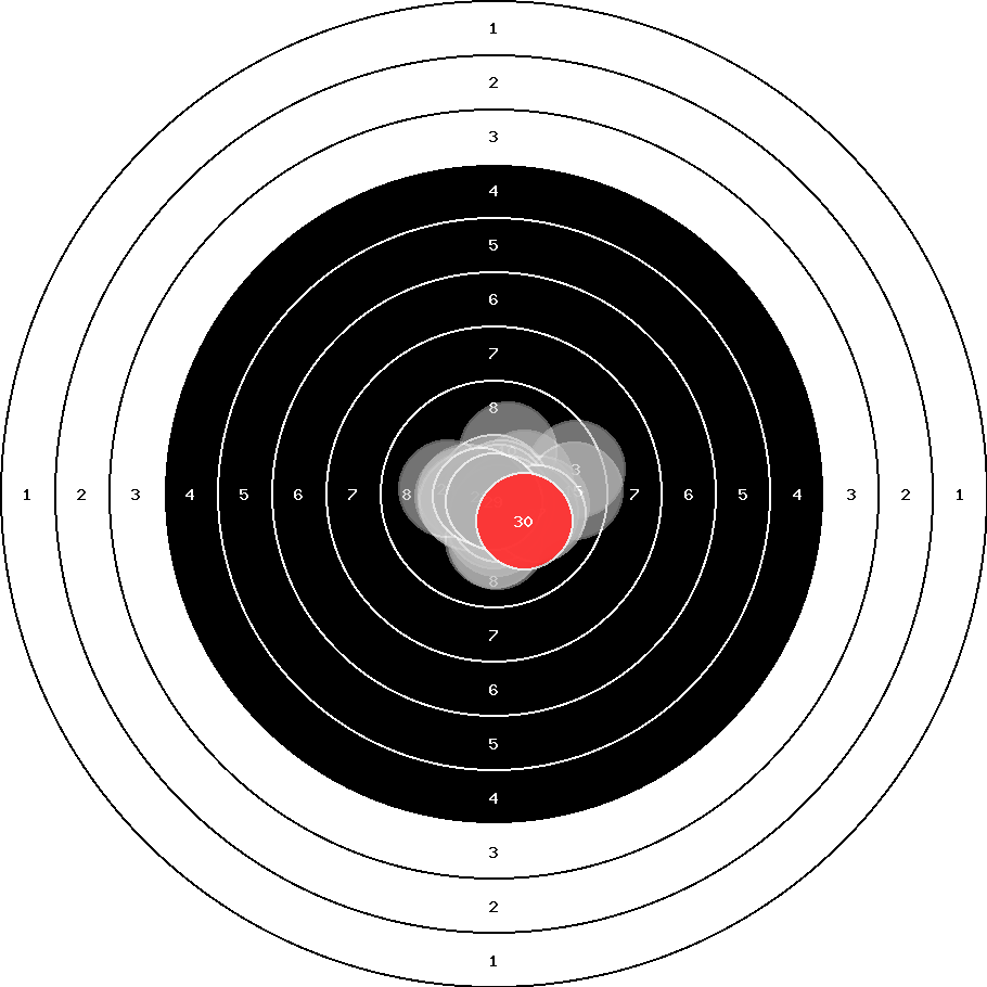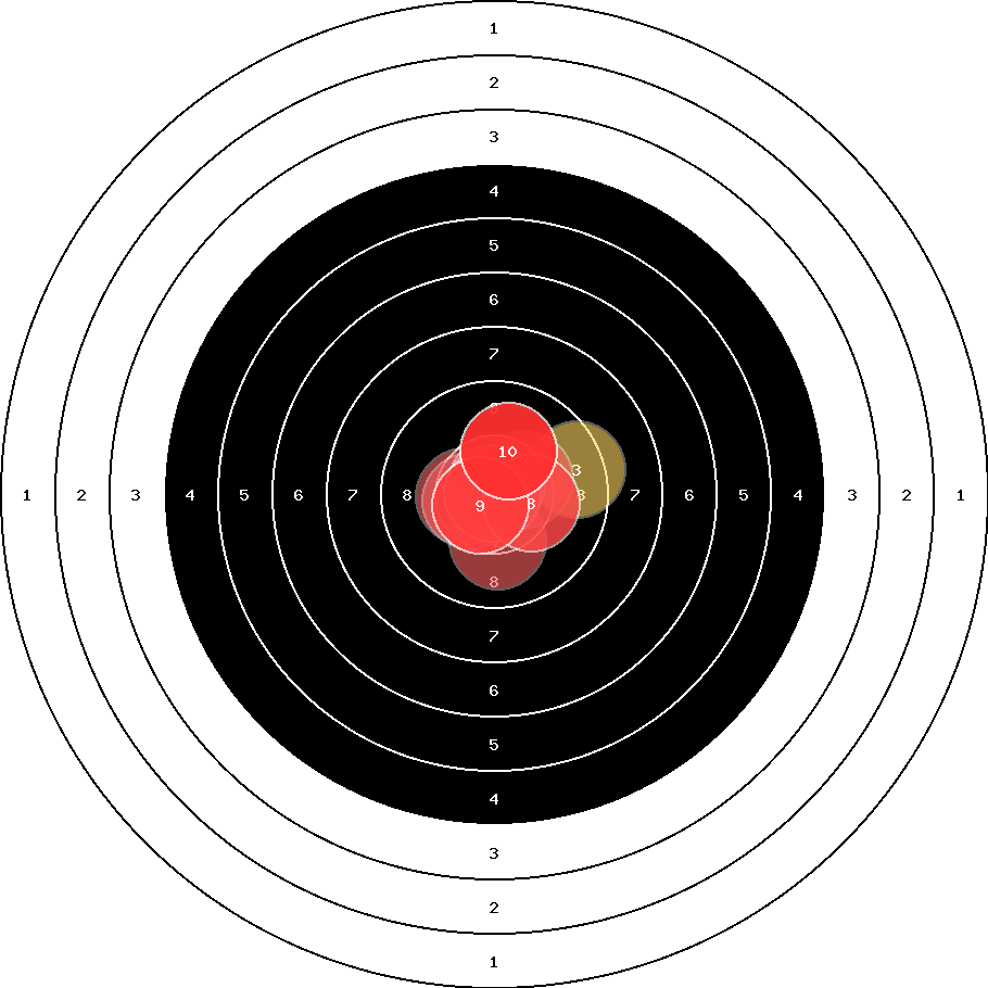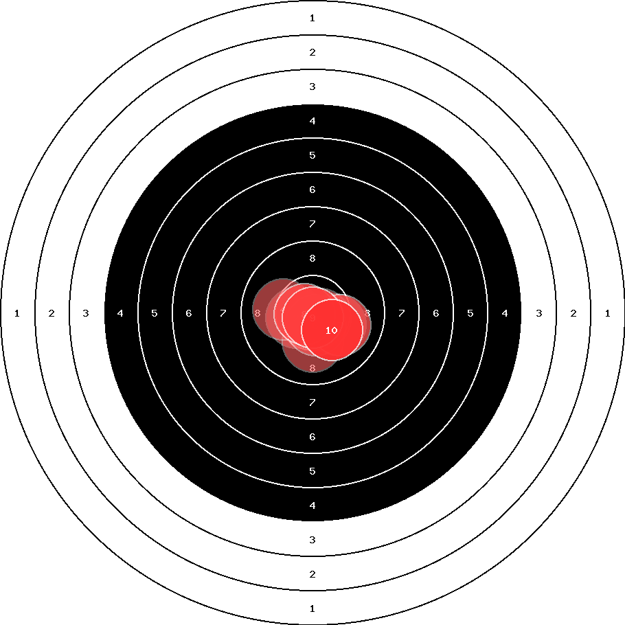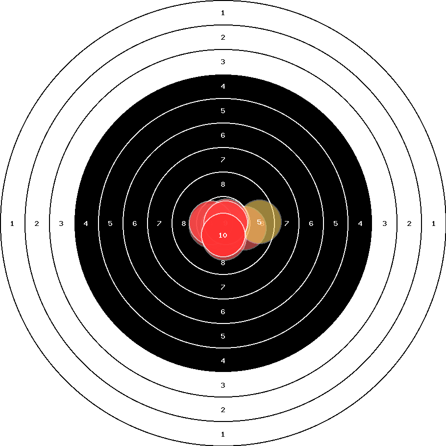 hit position: 0.36 mm right, 0.36 mm low