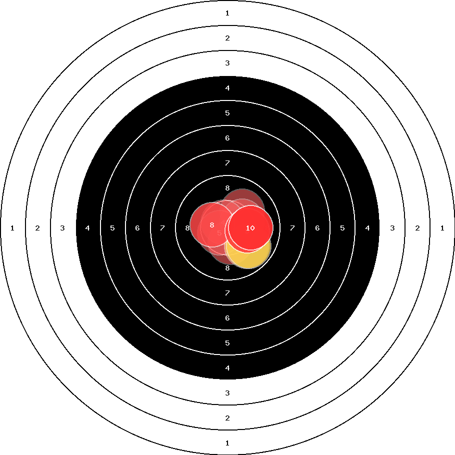 hit position: 0.86 mm right, 0.29 mm low