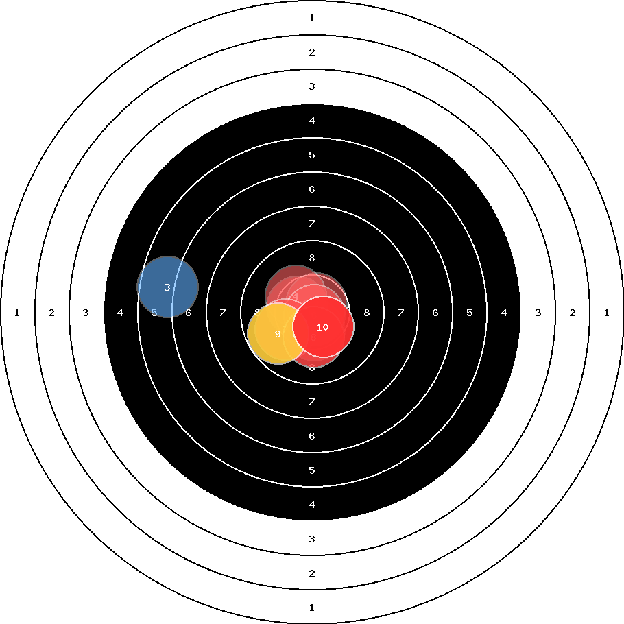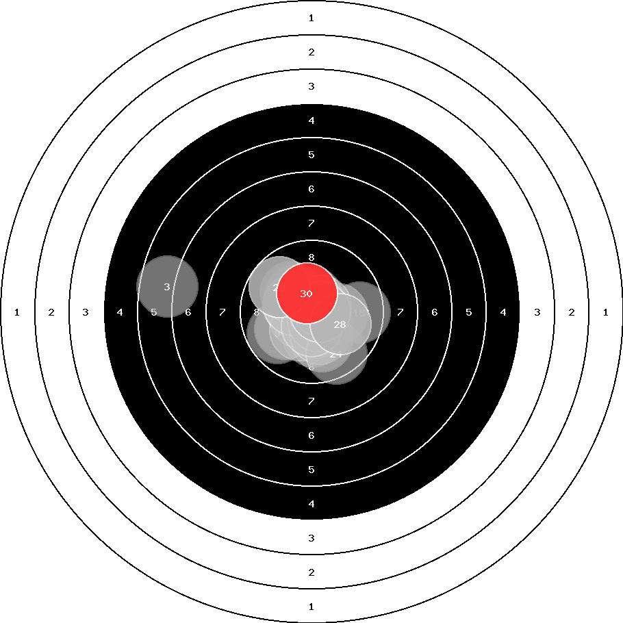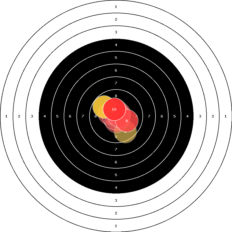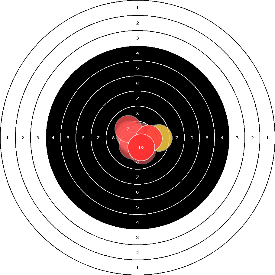 hit position: 0.43 mm left, 0.23 mm low