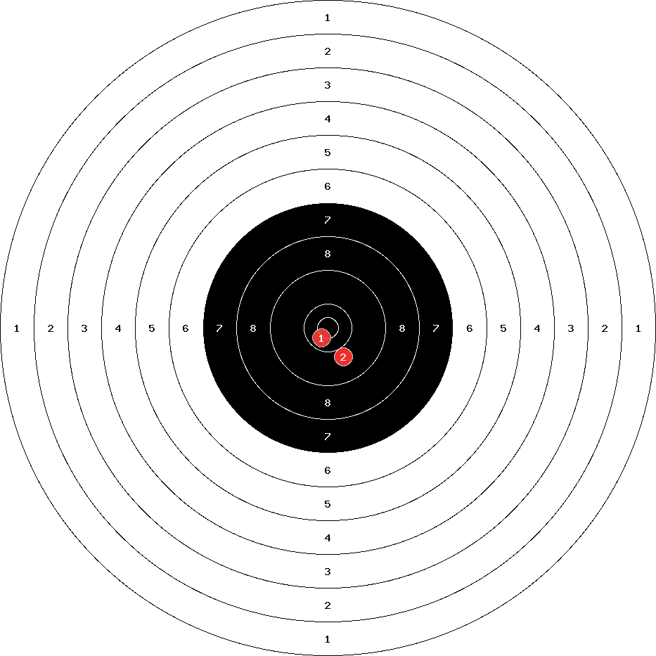 hit position: 0.84 mm right, 0.79 mm low