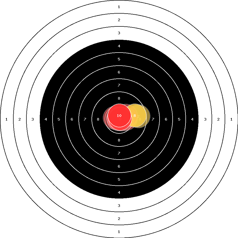 hit position: 0.91 mm right, 0.33 mm high